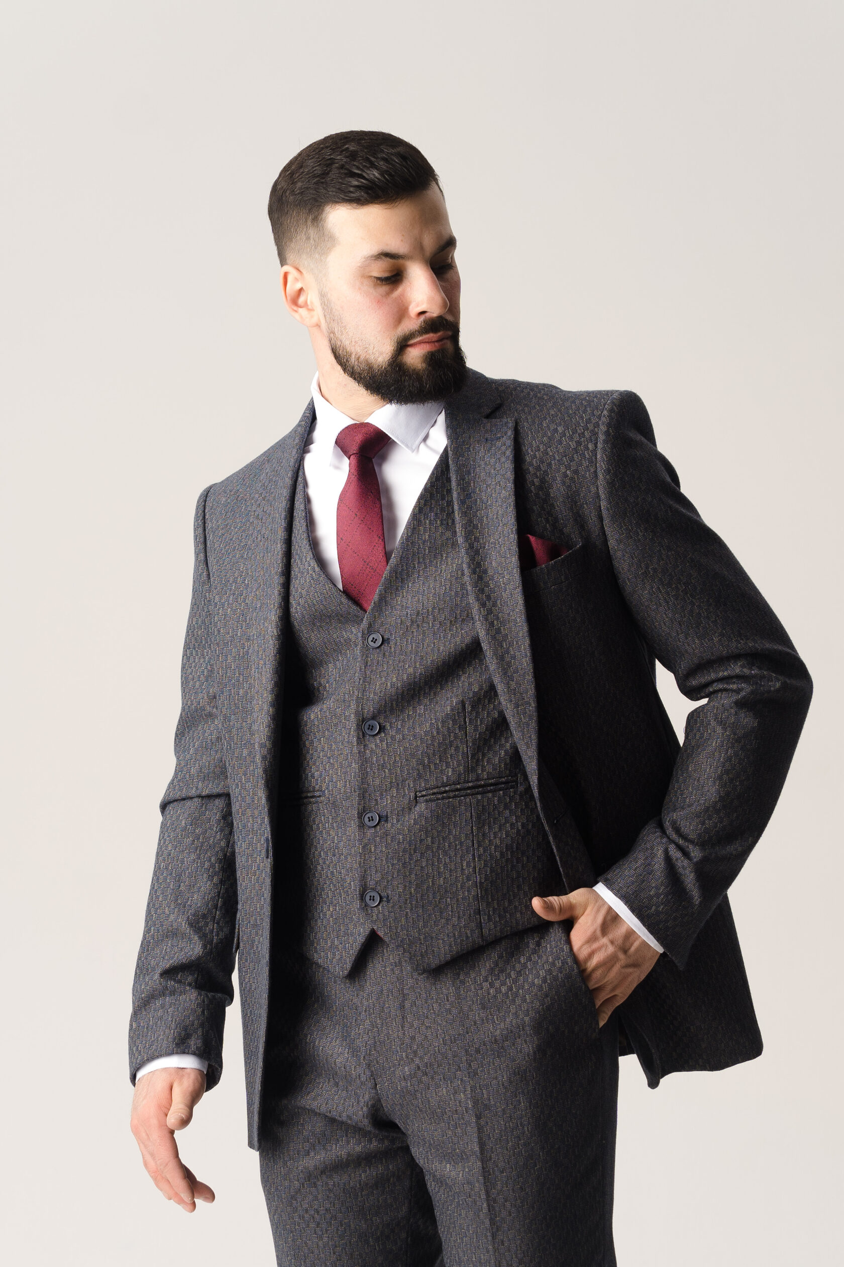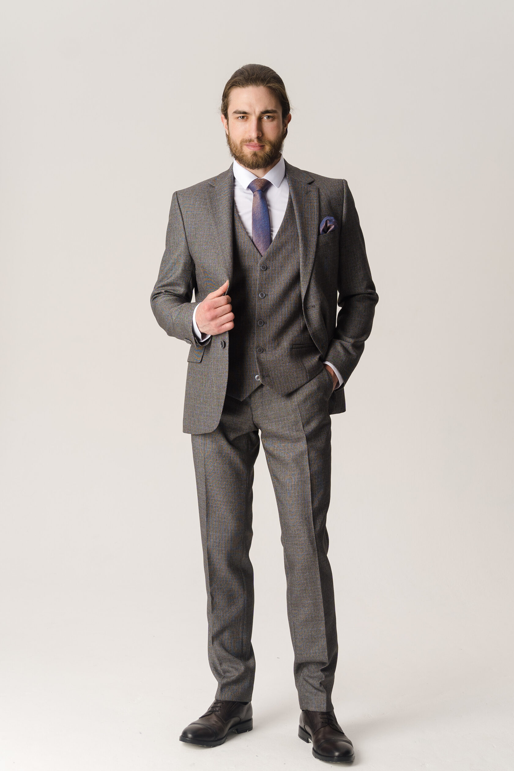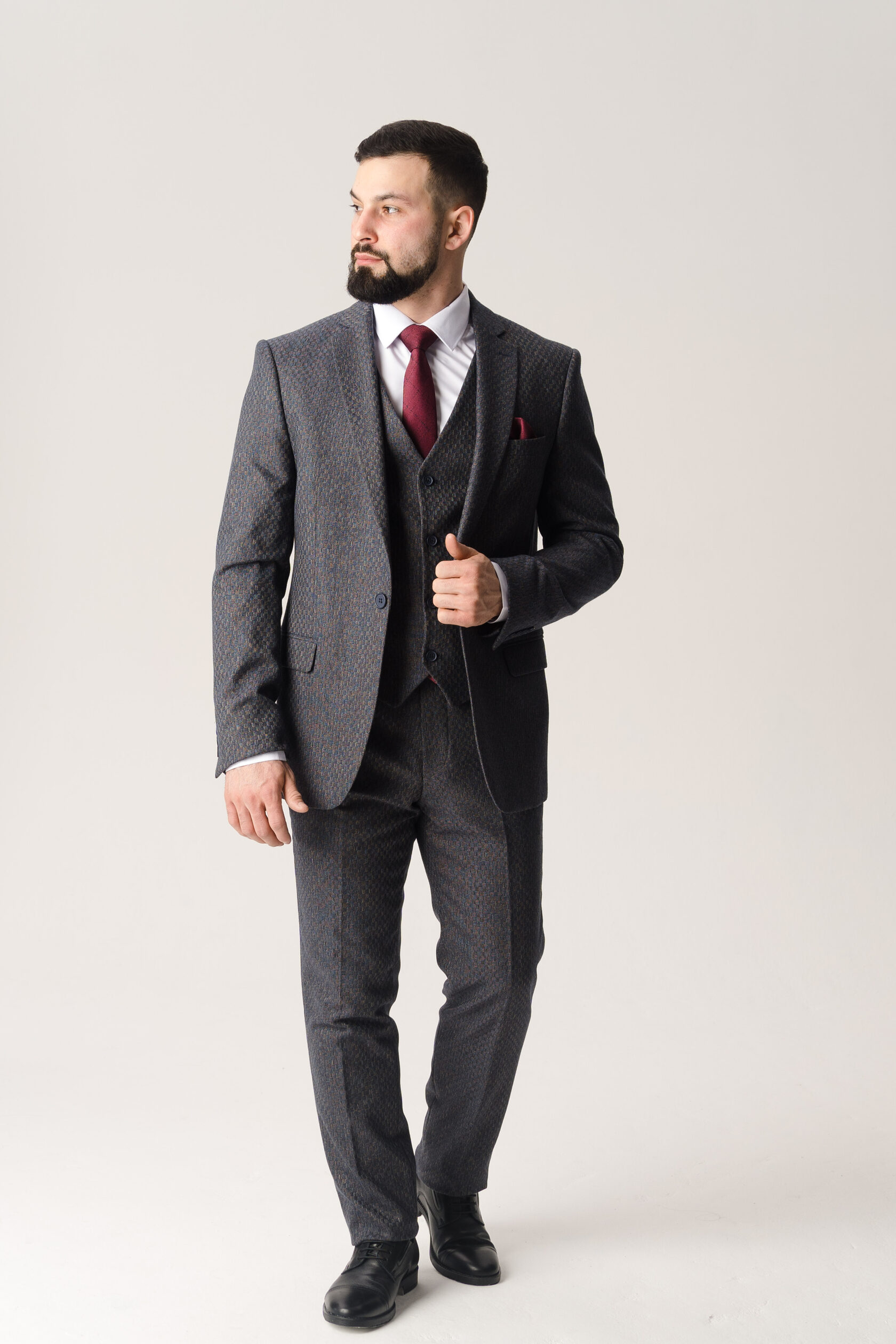 Костюм тройка графитовый фактурный