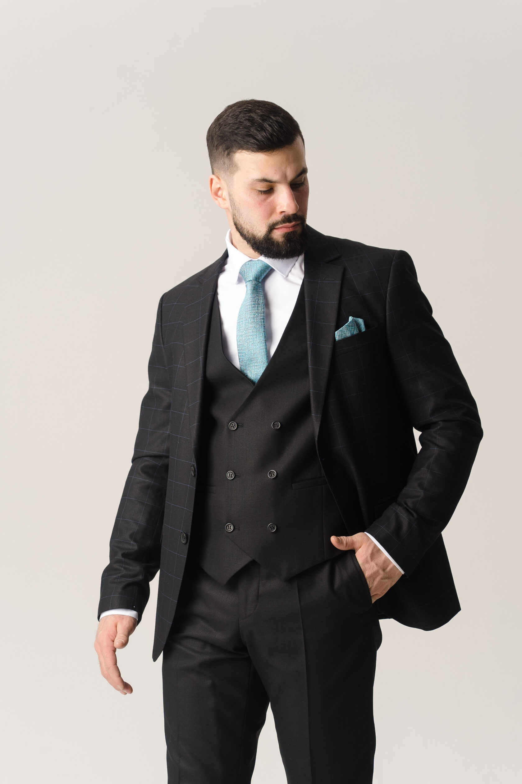 Костюм тройка темно-серый в двойную клетку