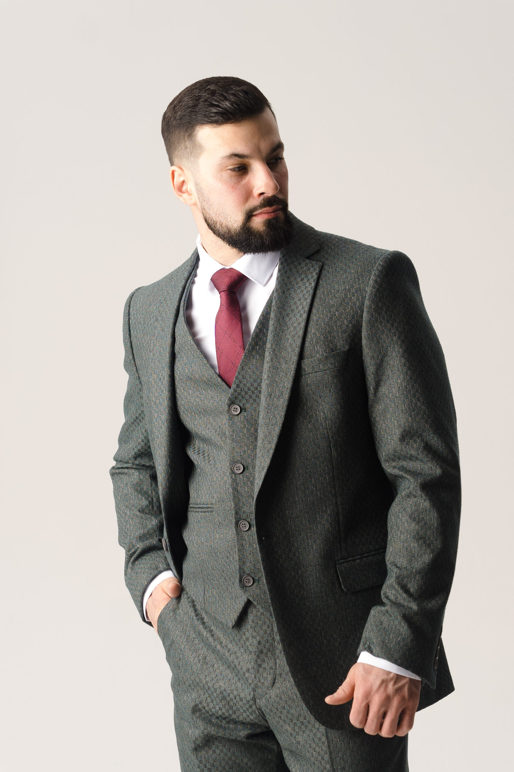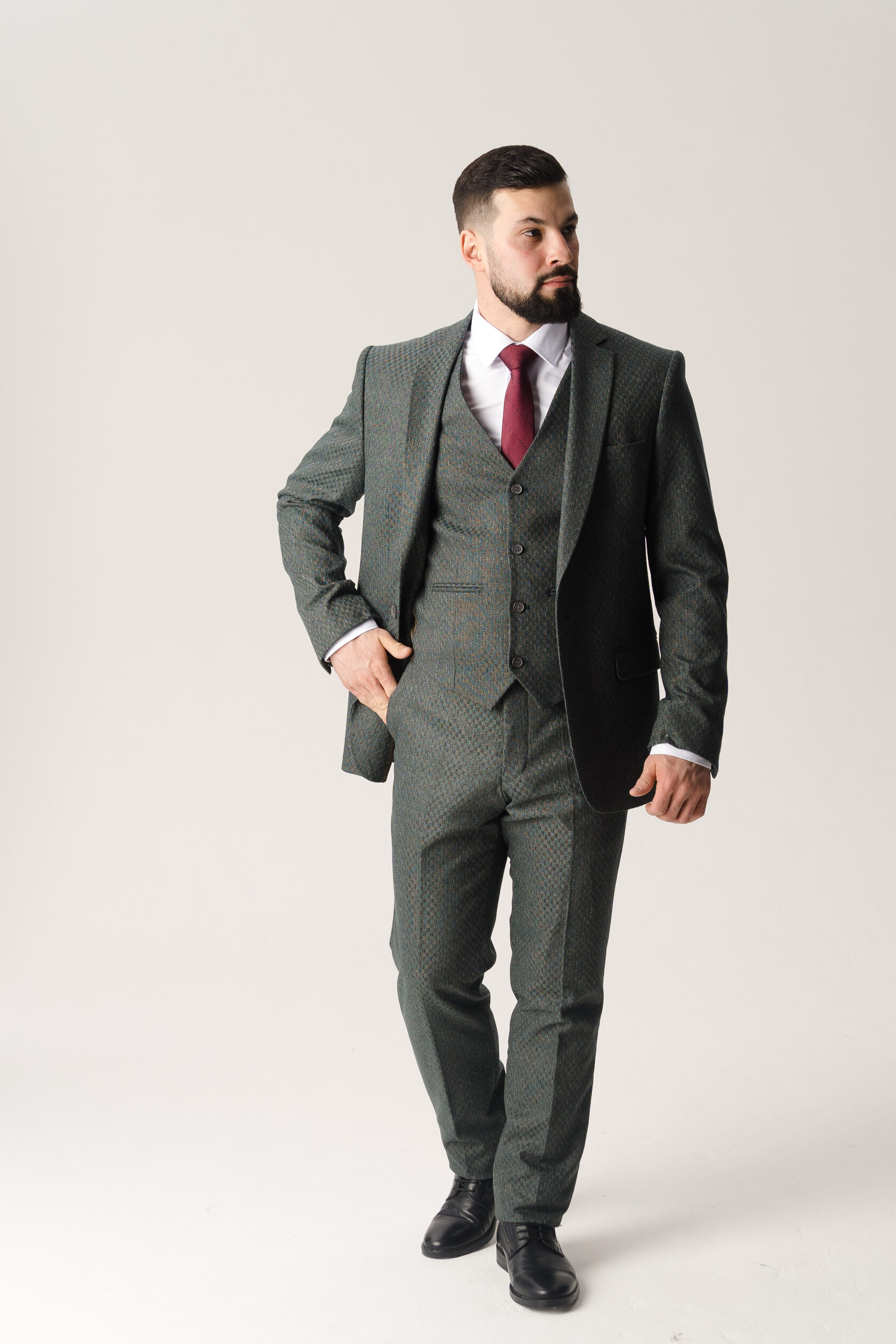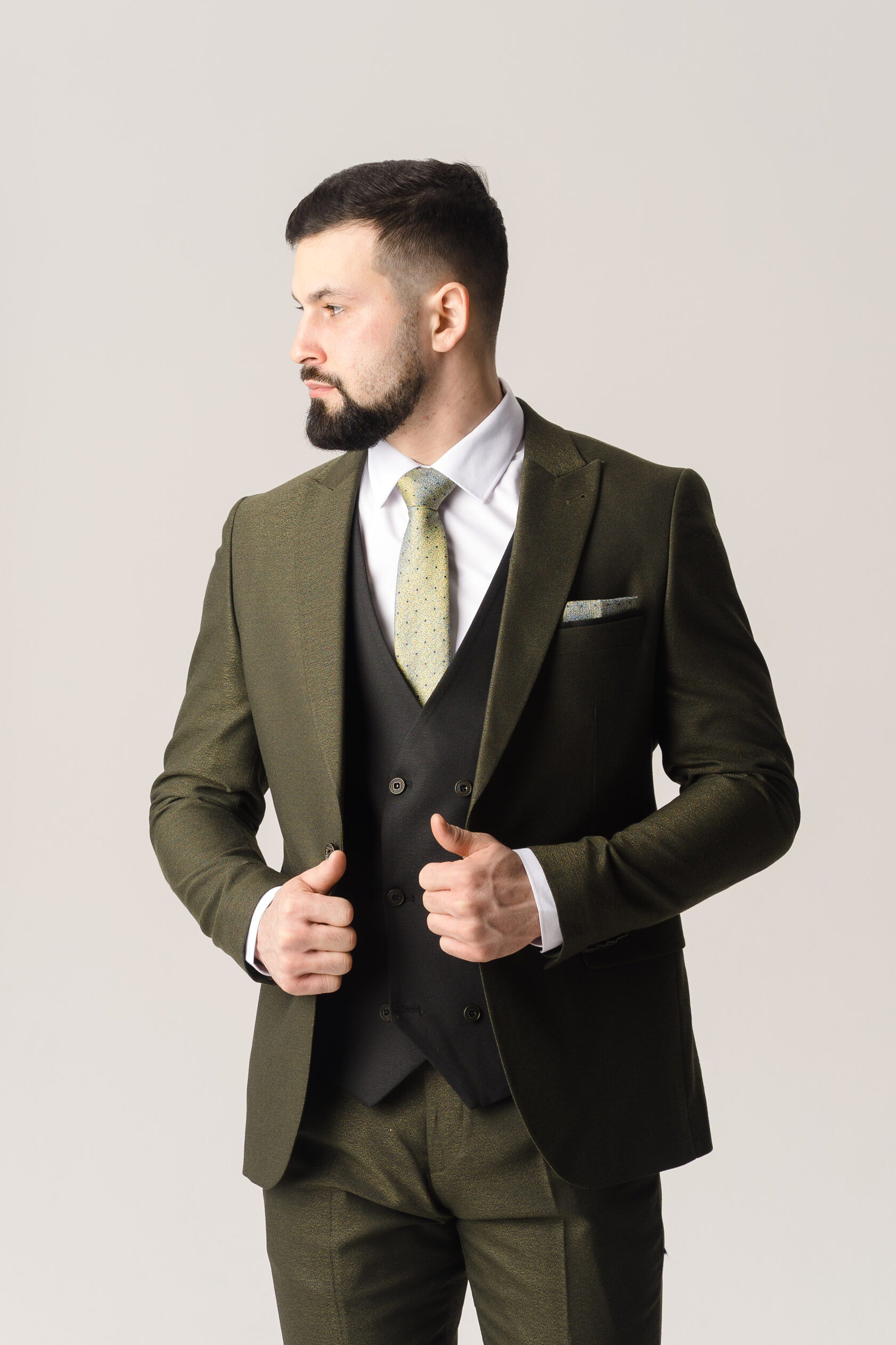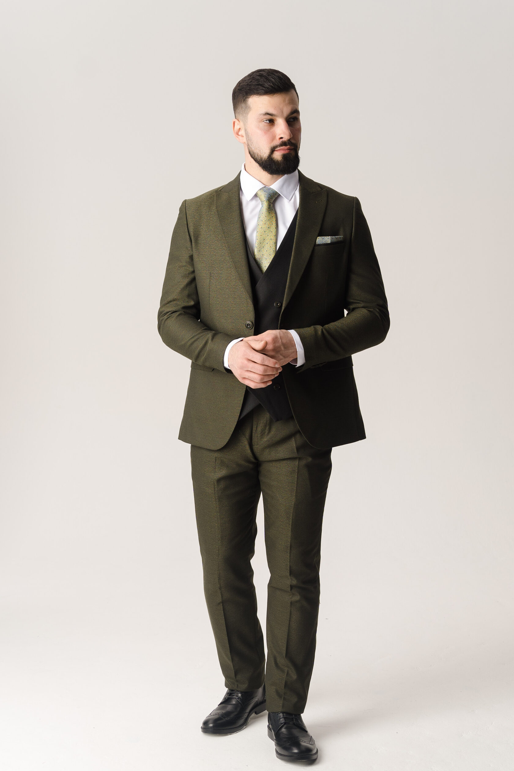 Костюм тройка оливковый фактурный