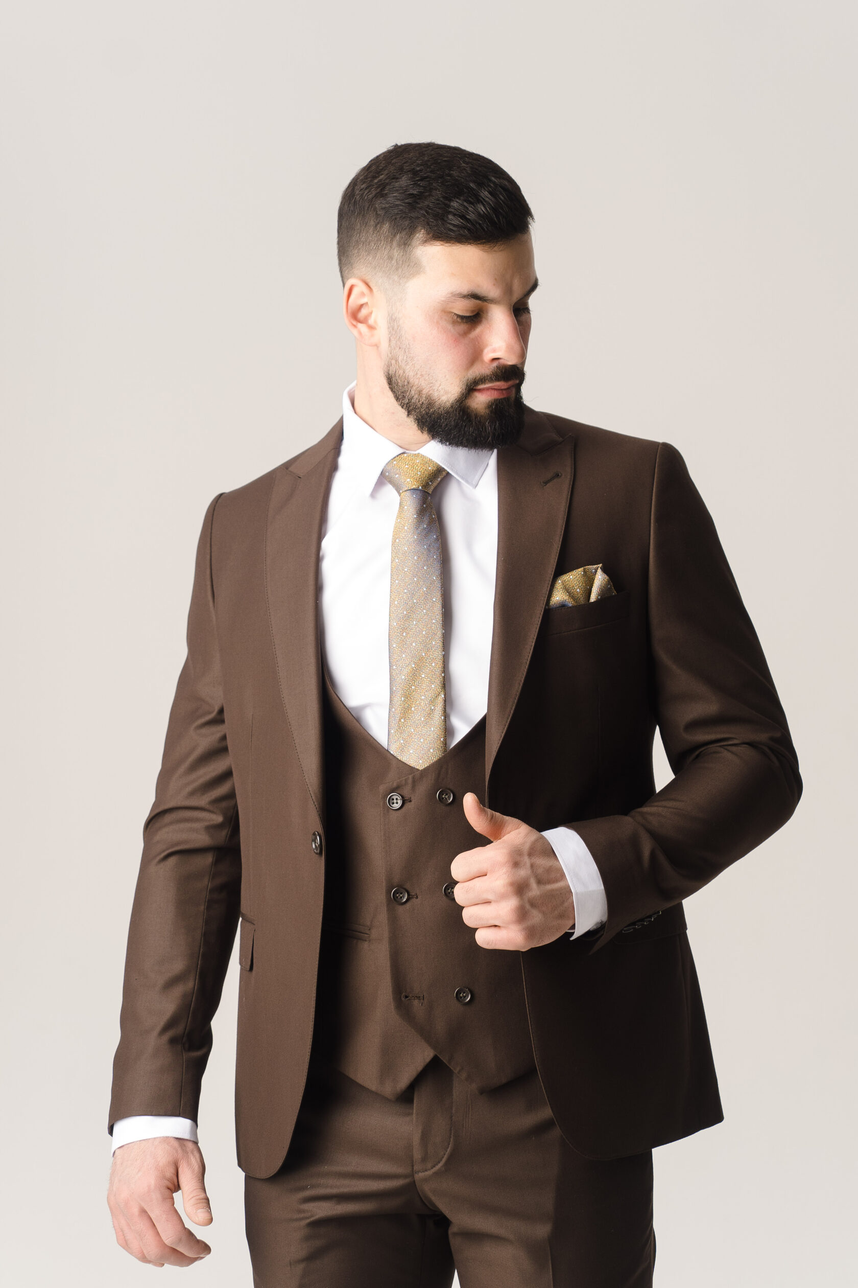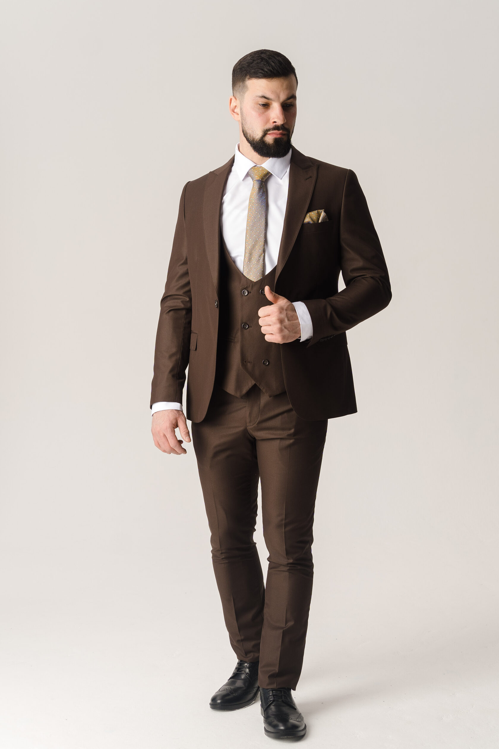 Костюм тройка коричневый однотонный