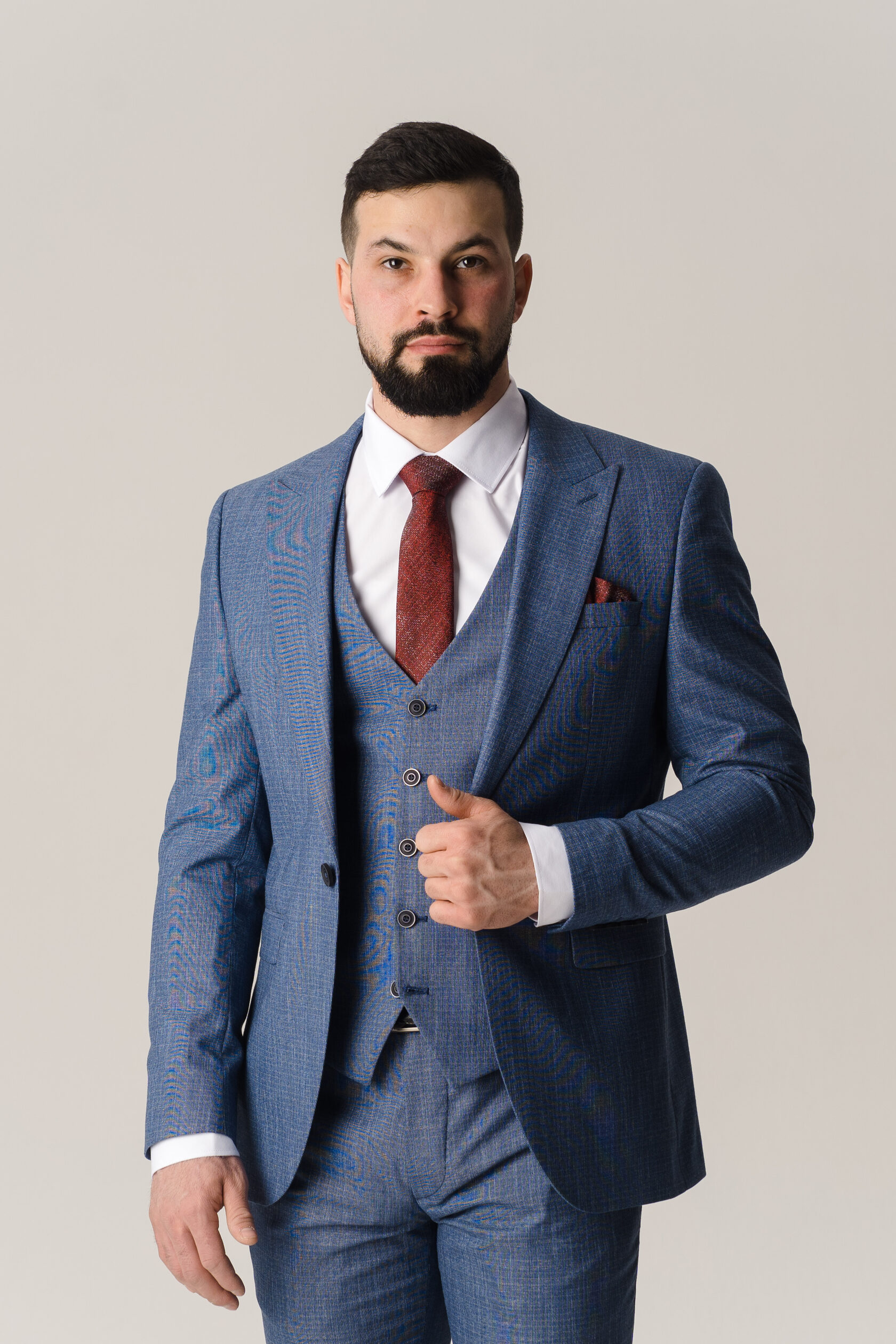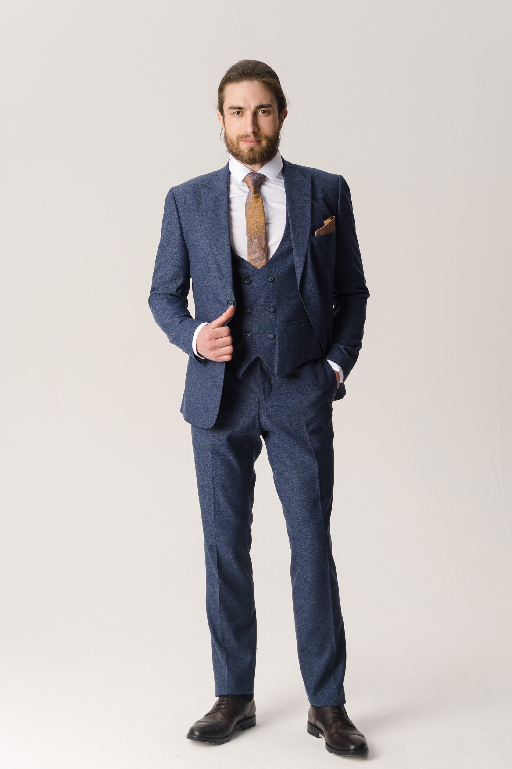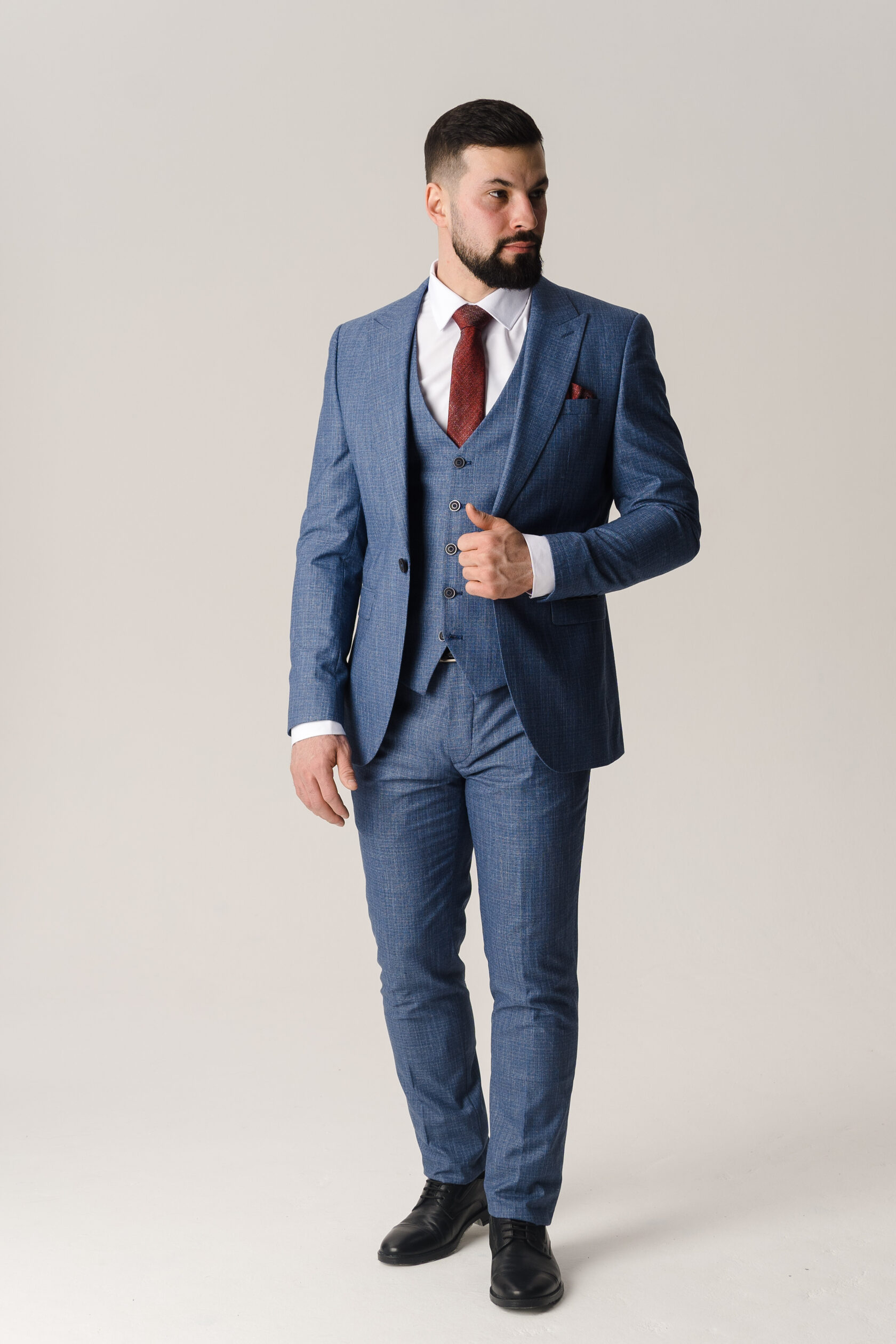 Костюм тройка синий фактурный