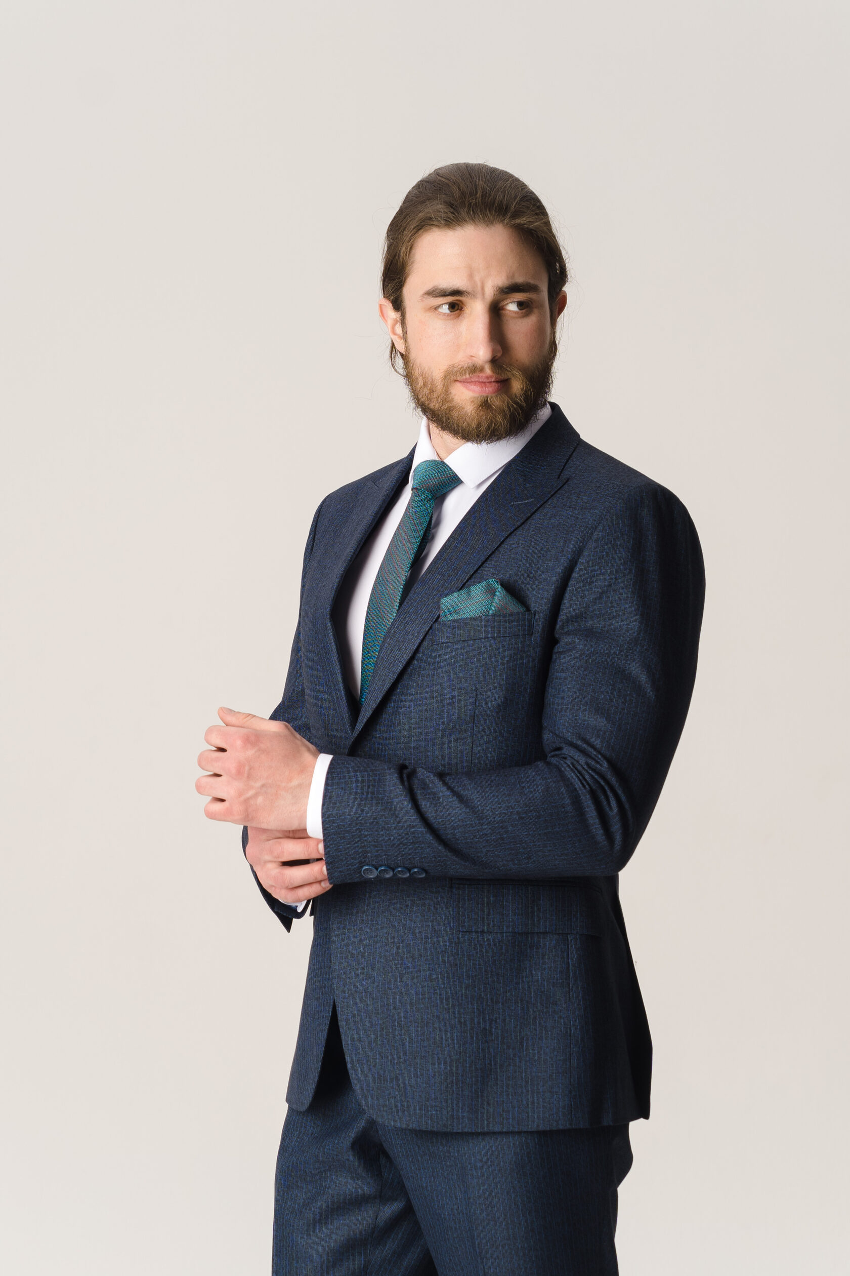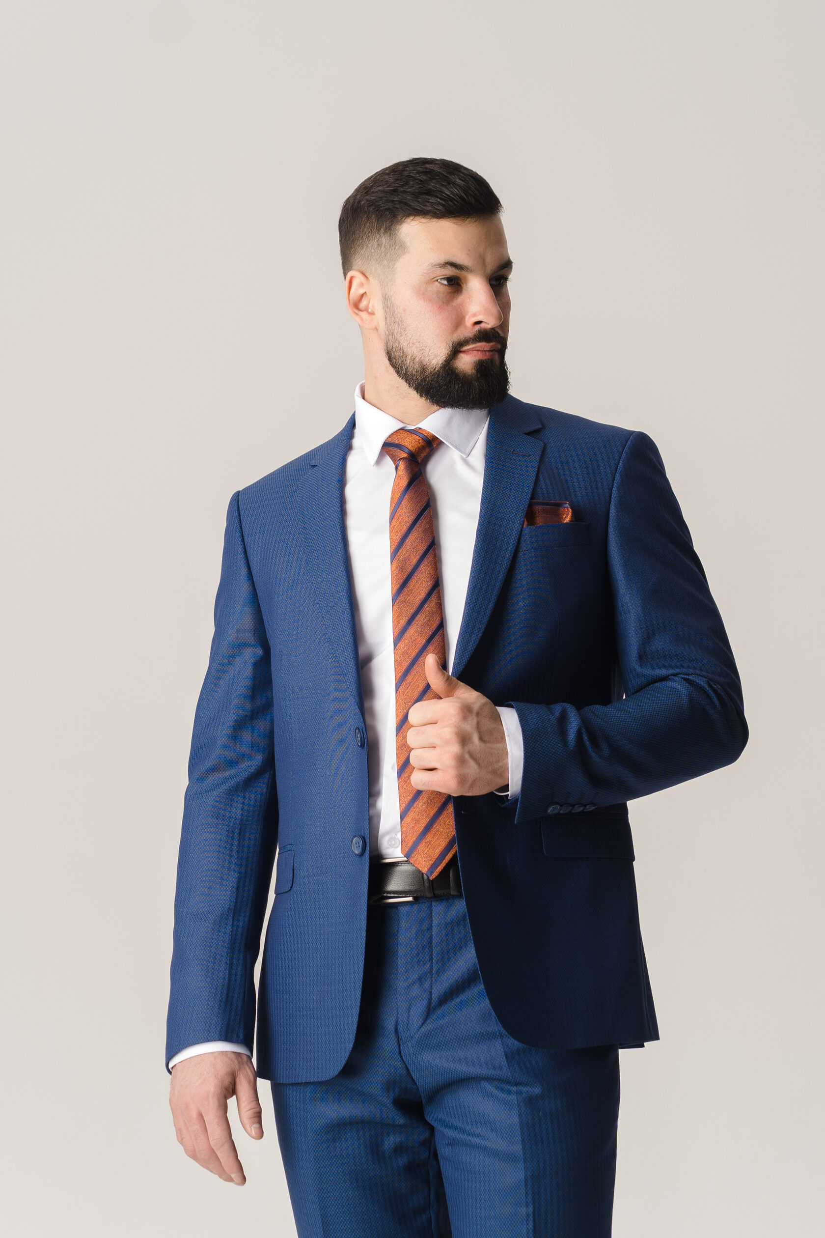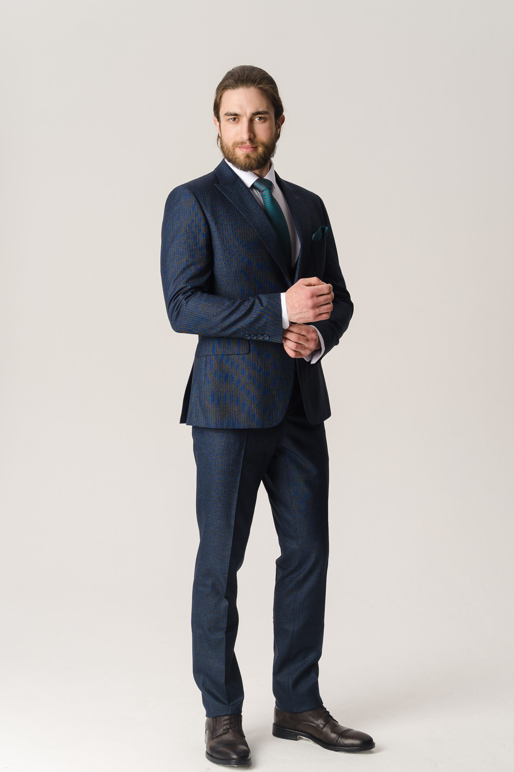 Костюм тройка синий фактурный