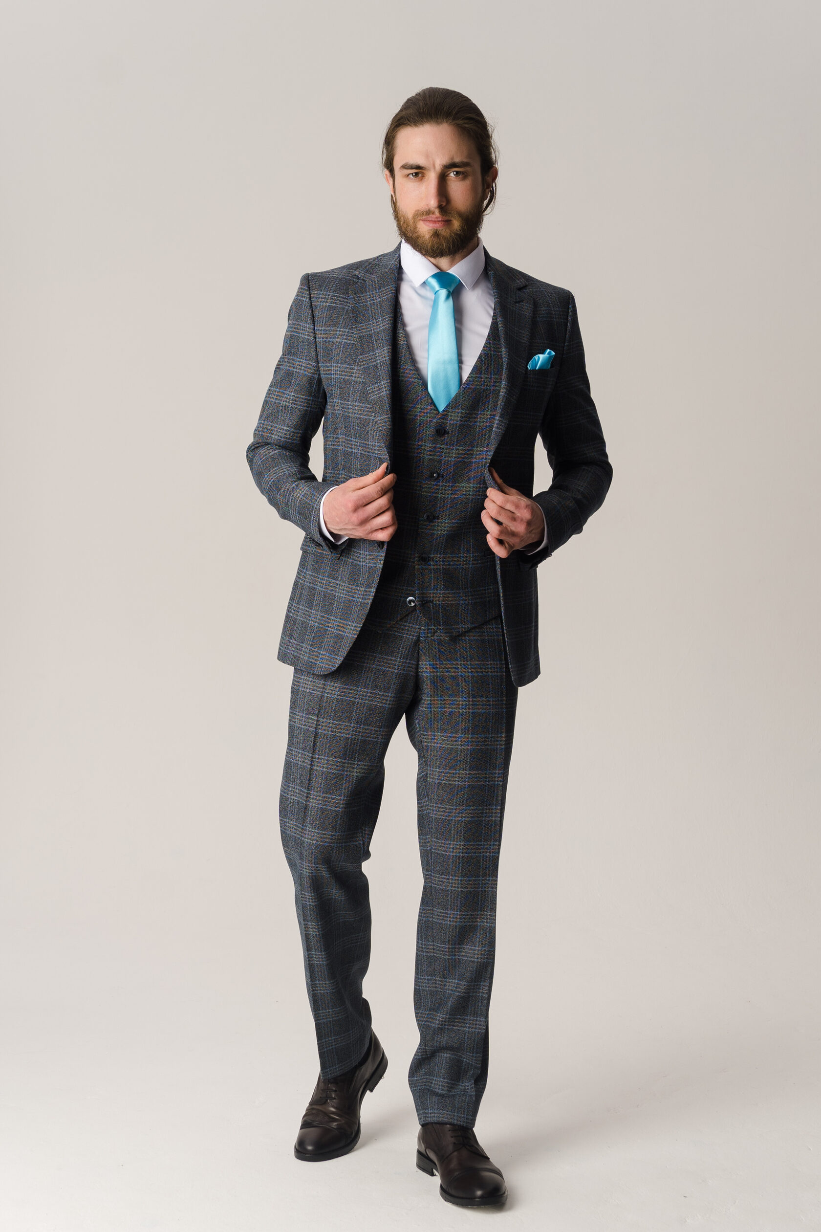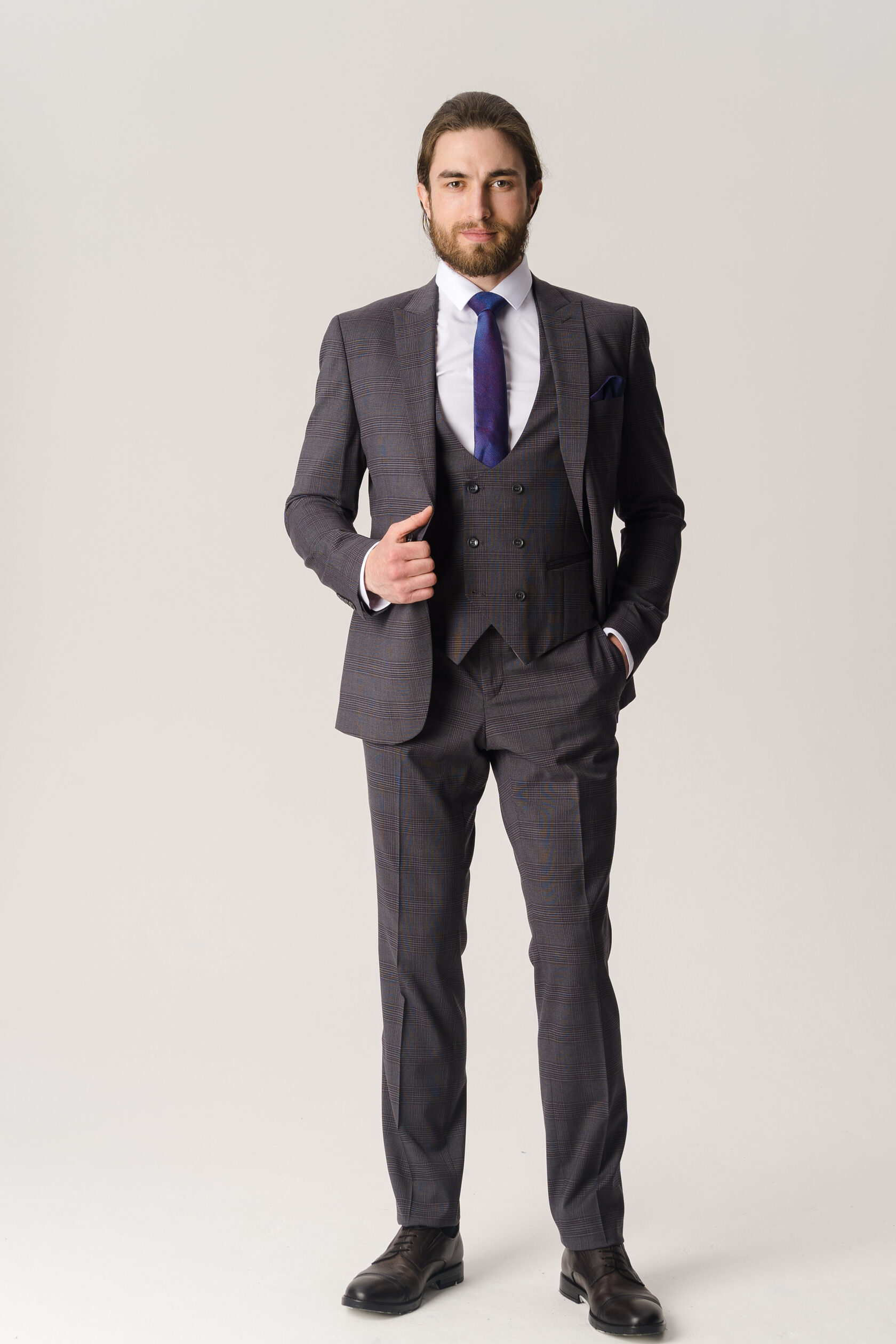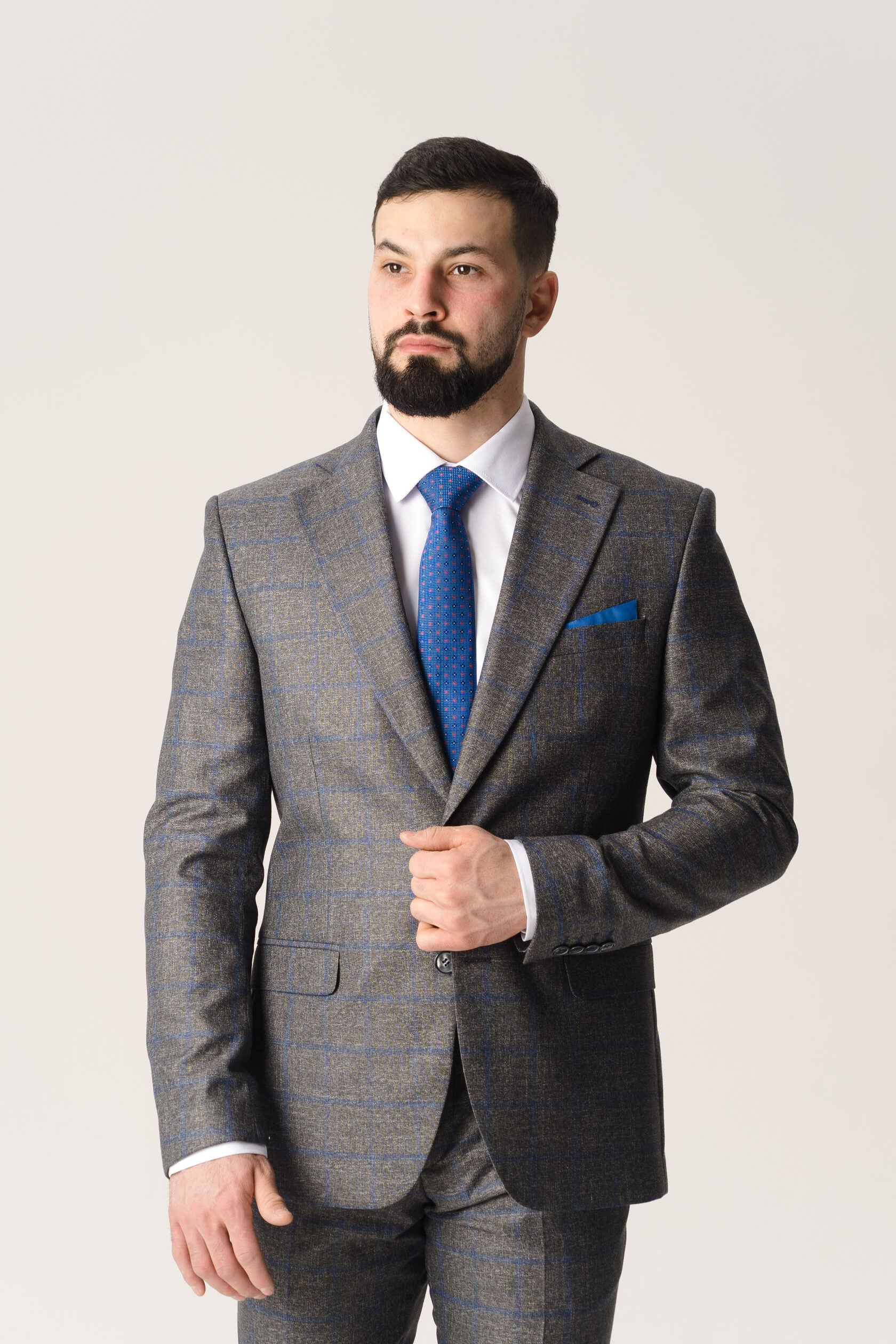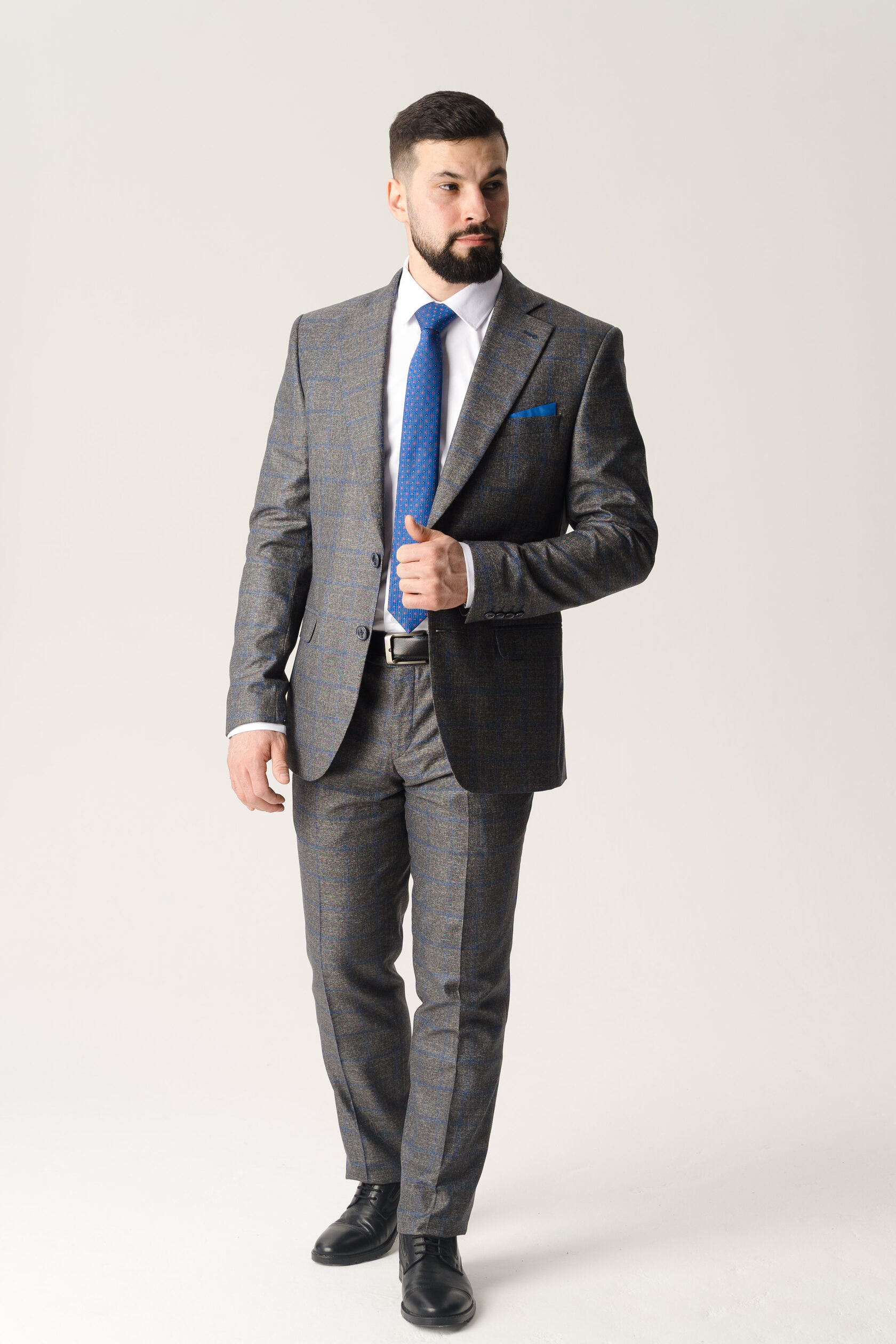 Костюм двойка серый в крупную синюю клетку