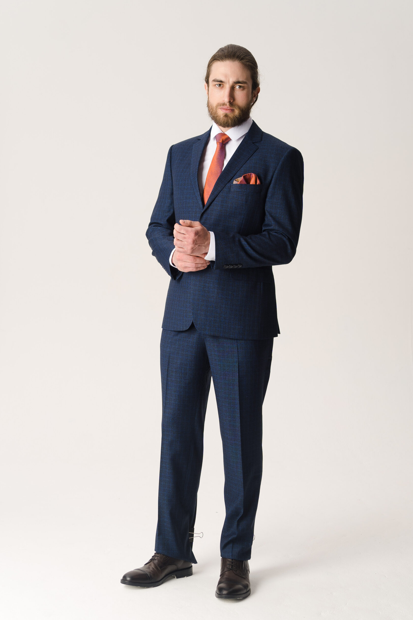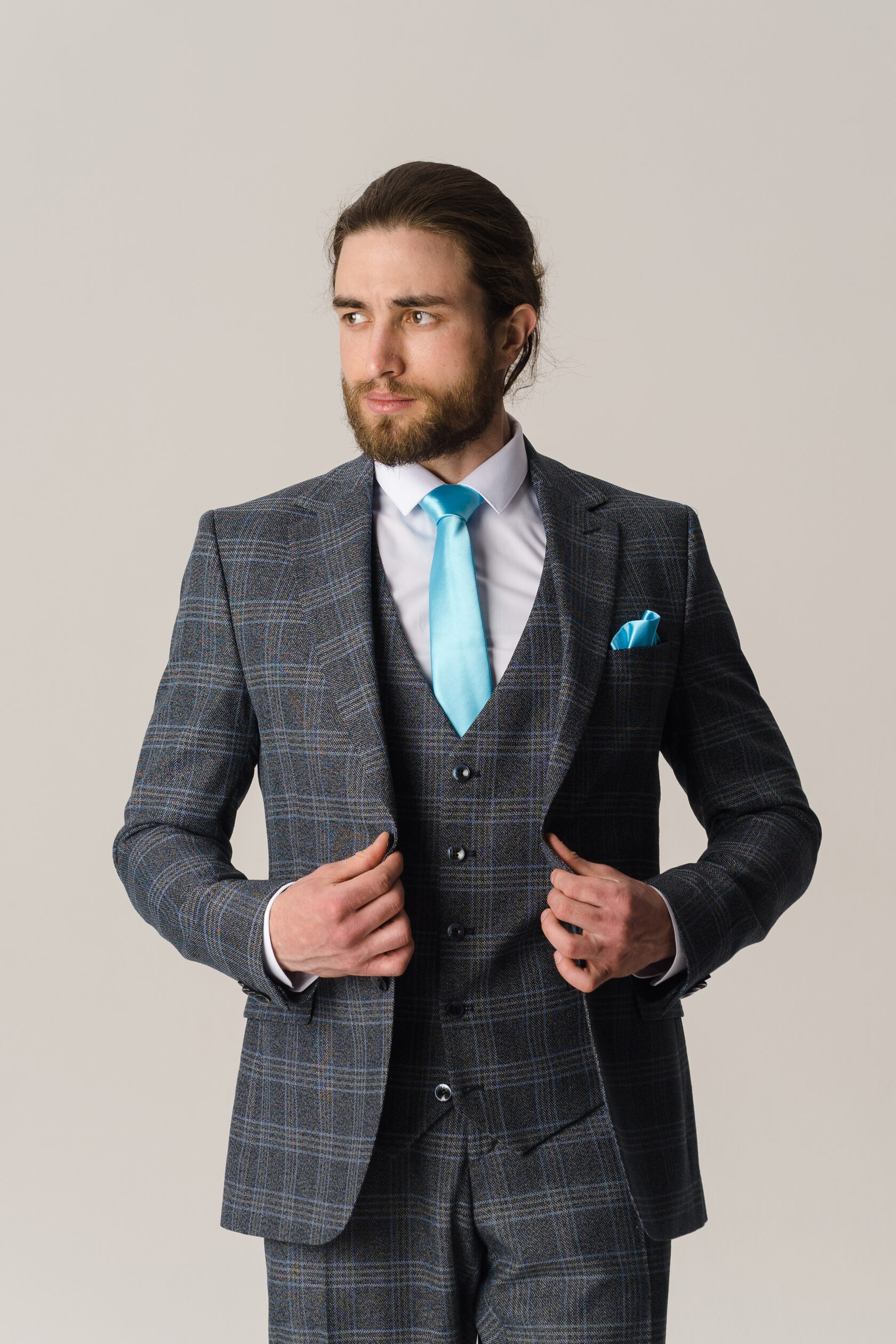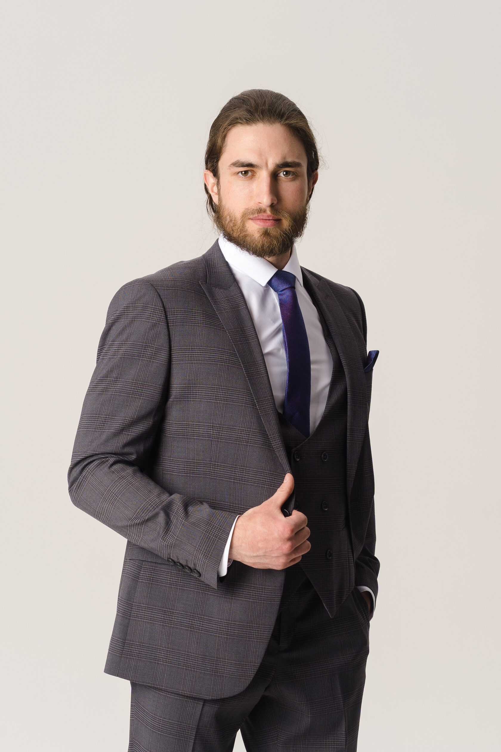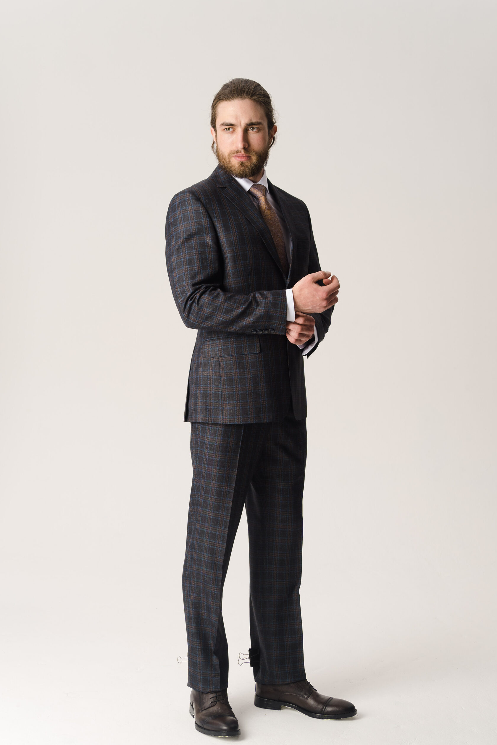 Костюм двойка серый в крупную синюю клетку
