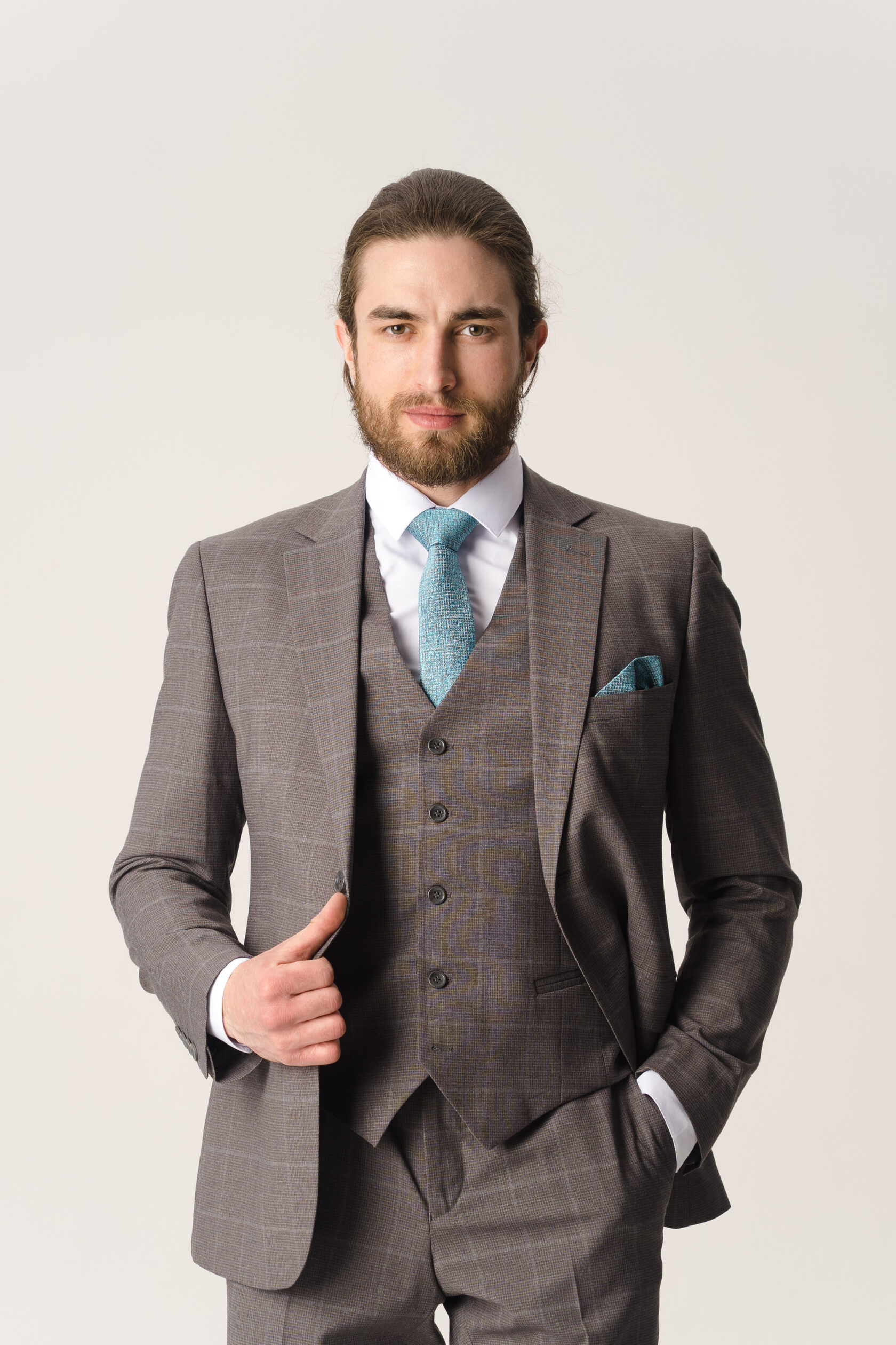 Костюм тройка комбинированный светло-серый в зелёную клетку