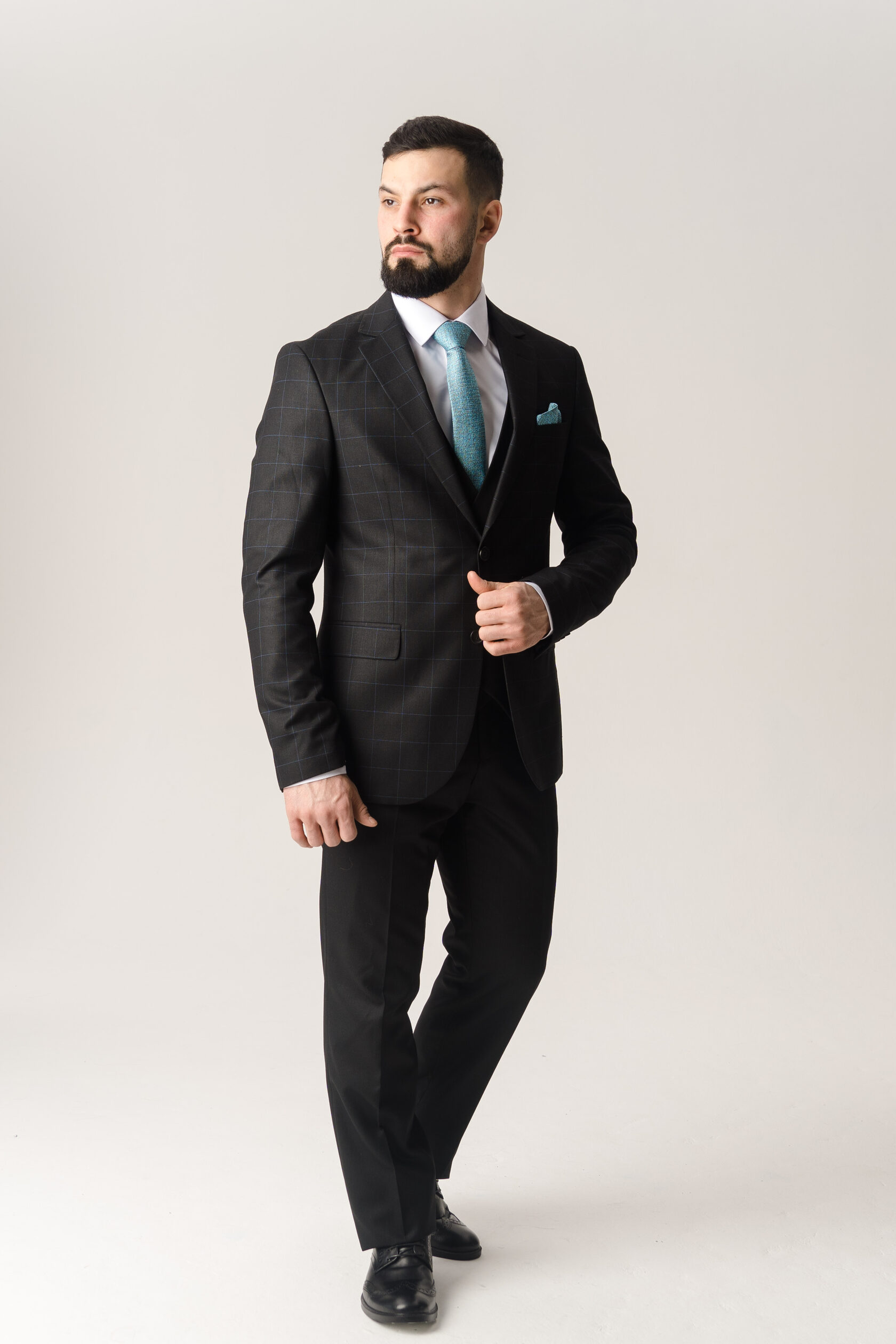 Костюм двойка синий в чёрную клетку
