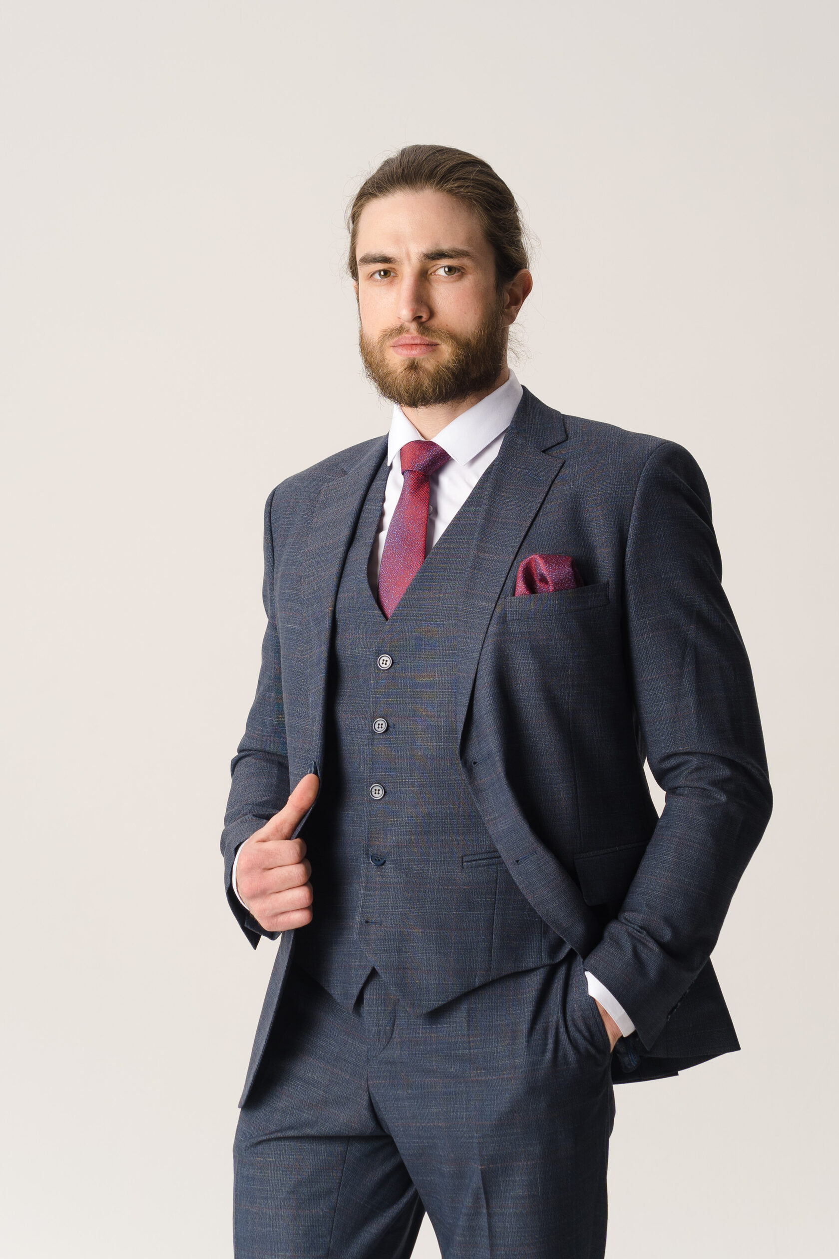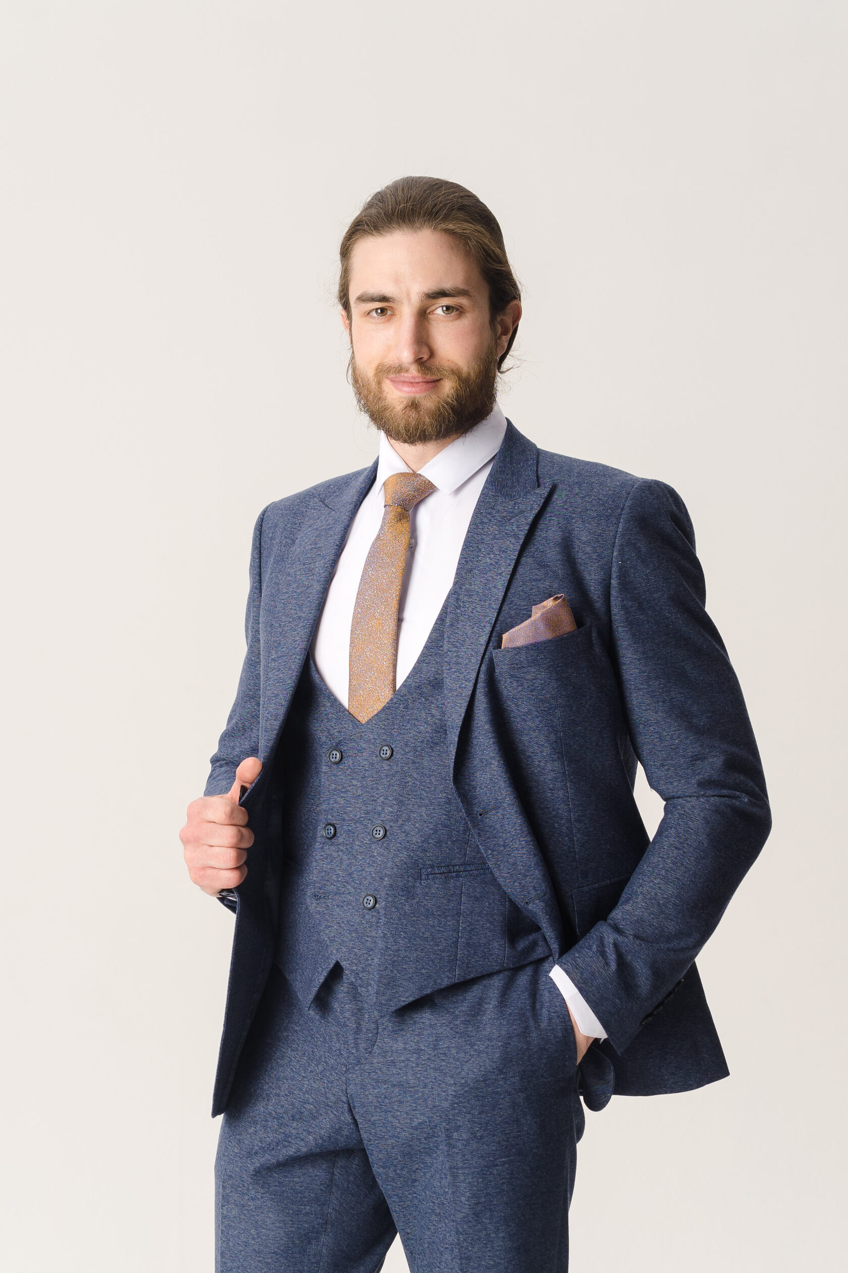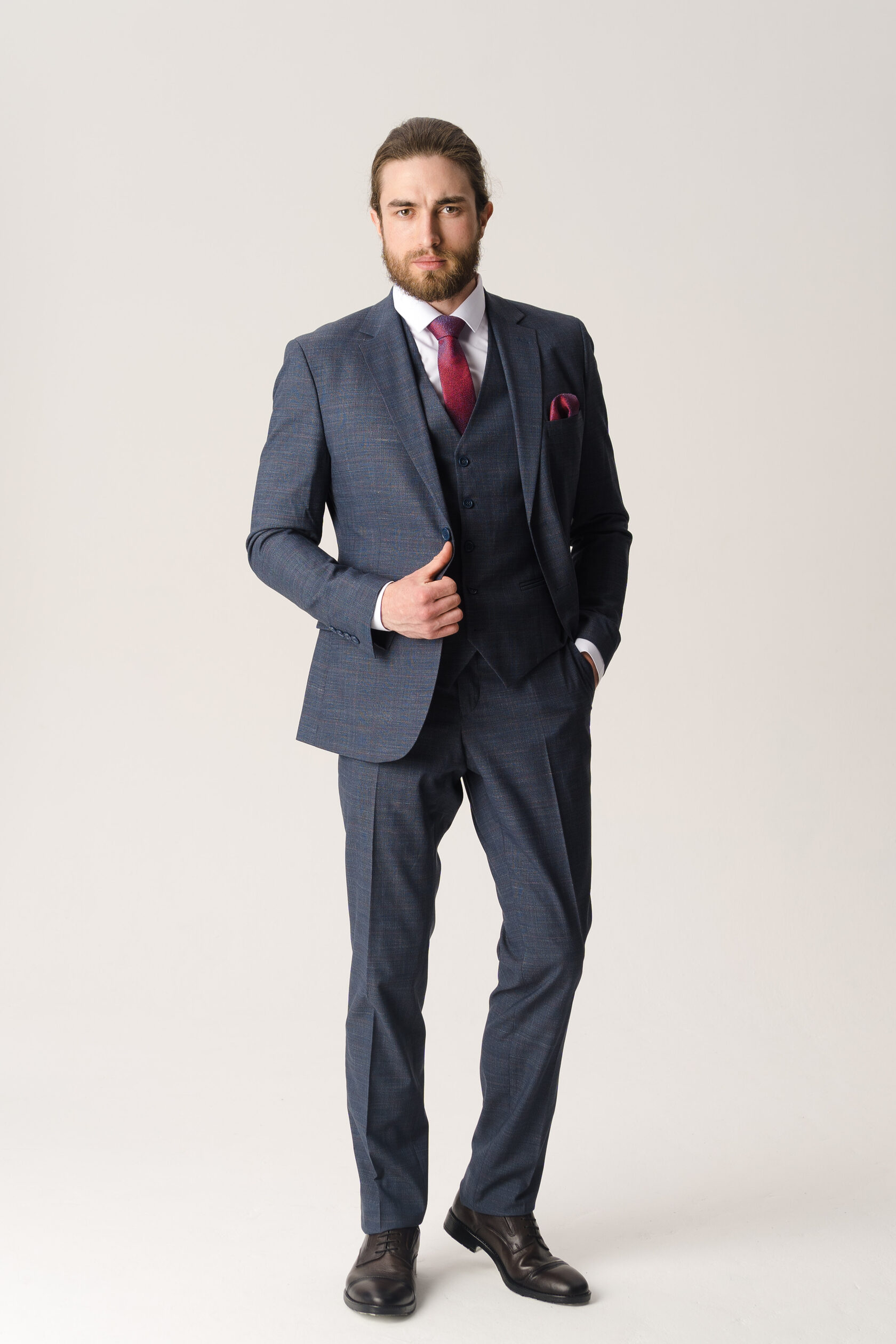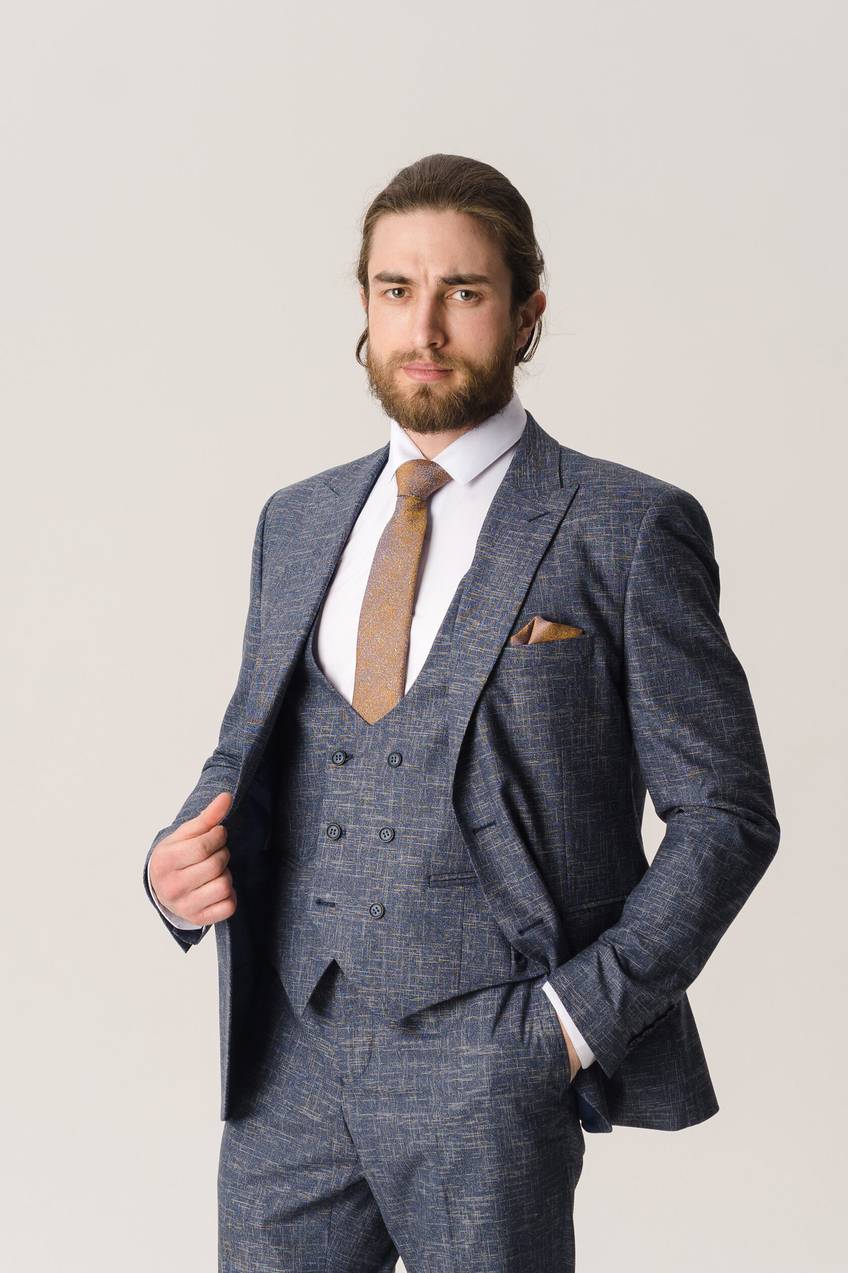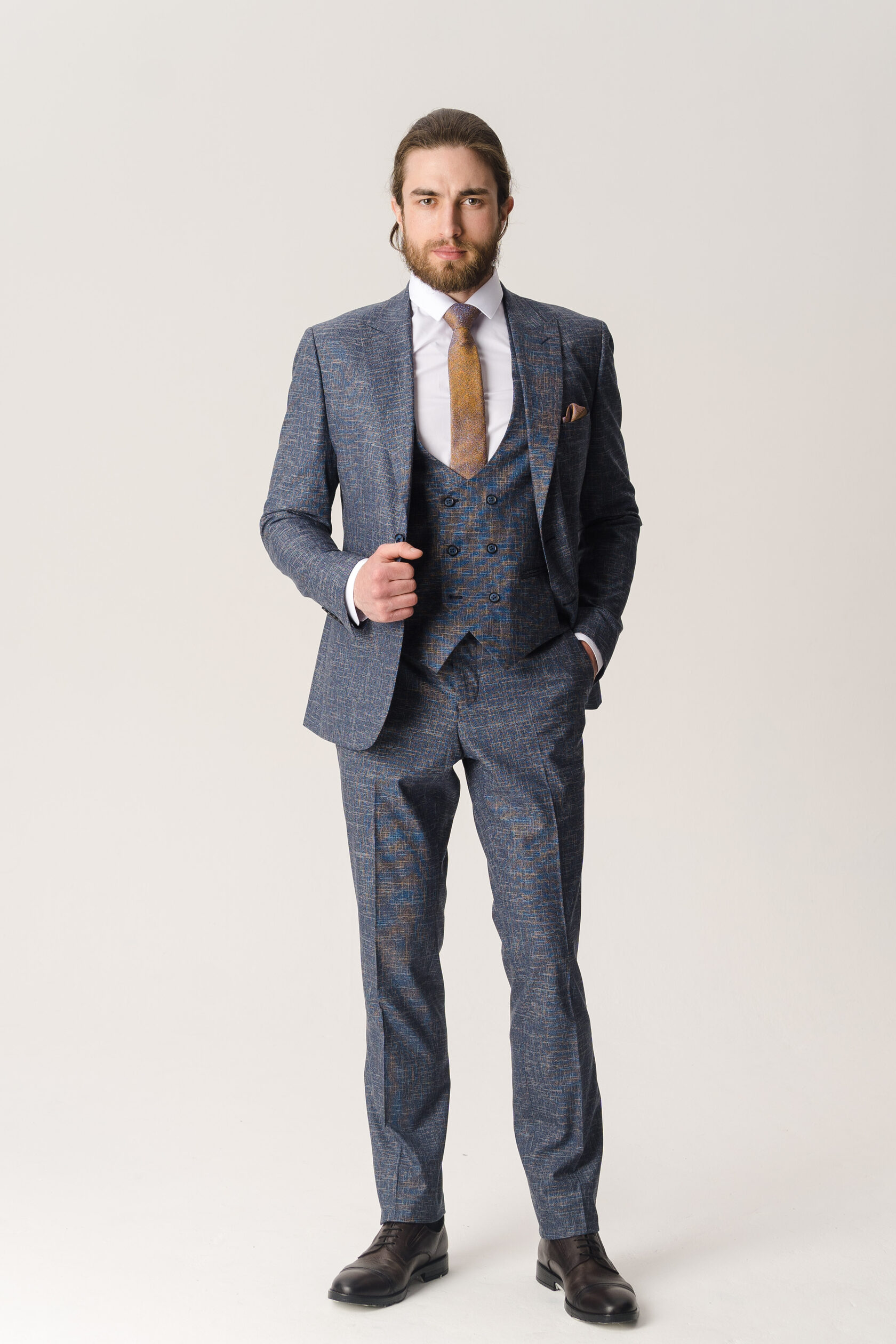 Костюм тройка серо-синий фактурный