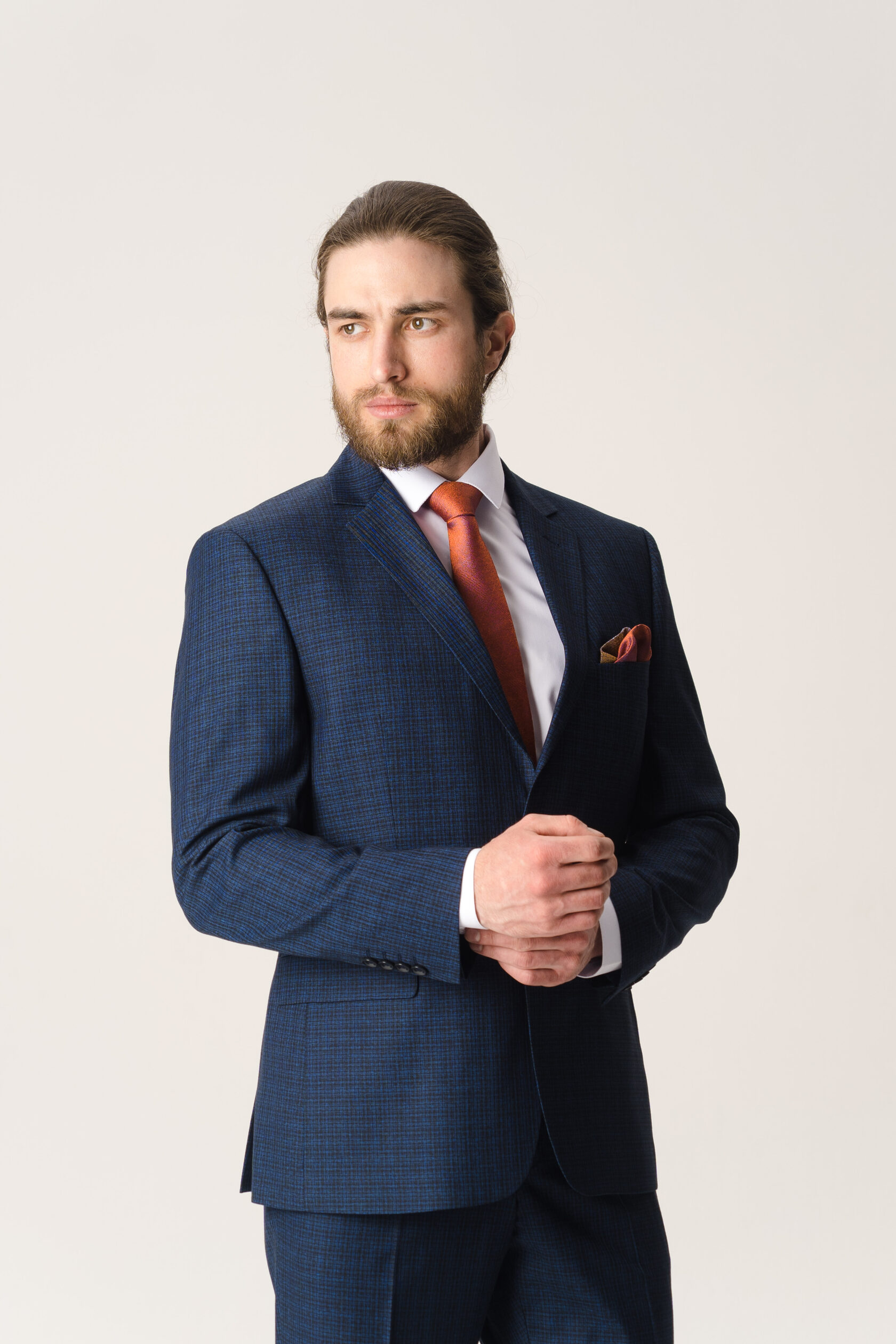 Костюм тройка синий фактурный в клетку