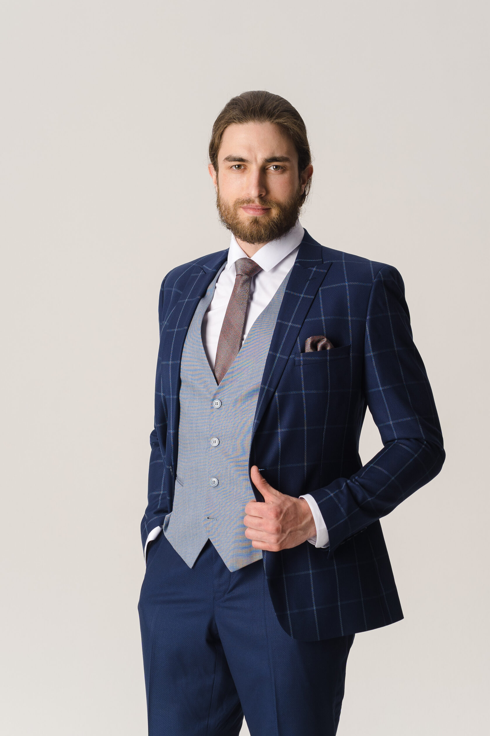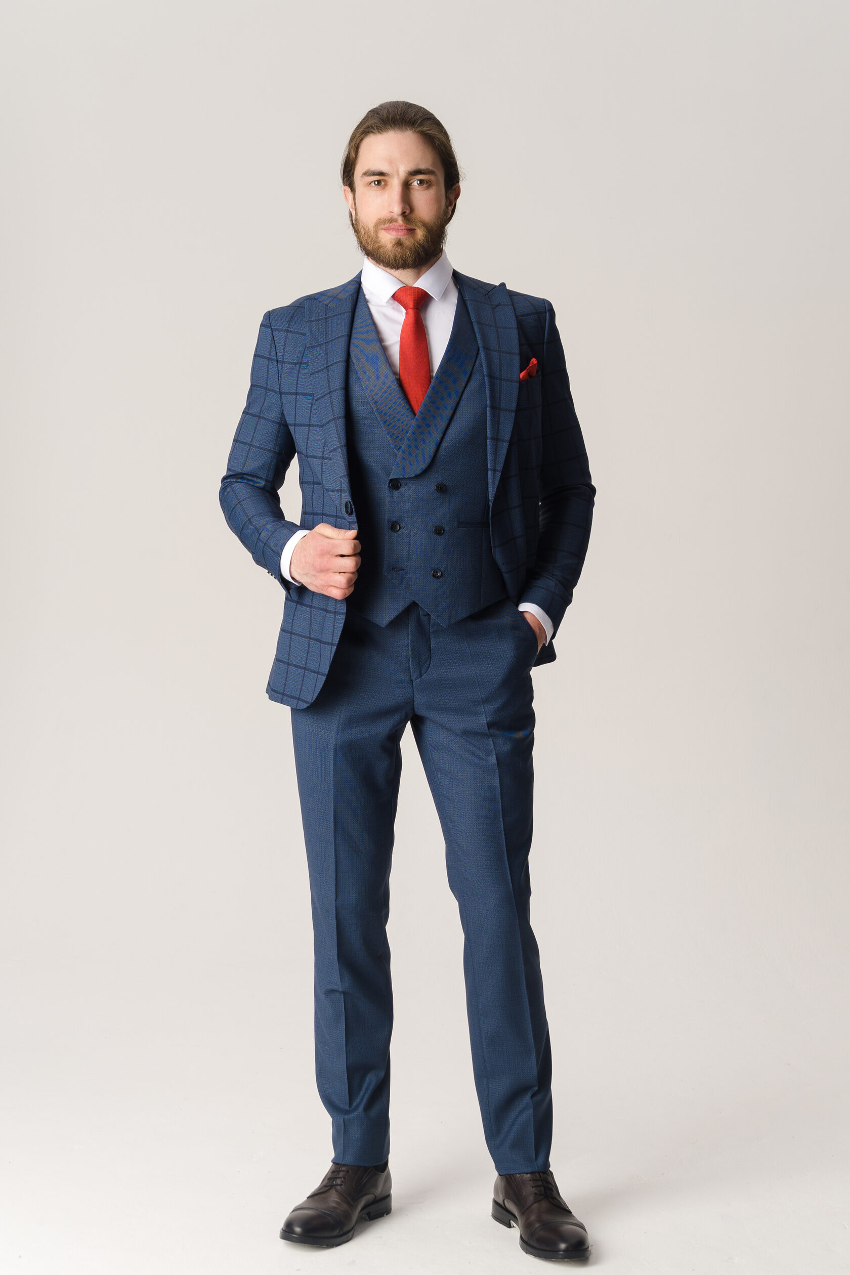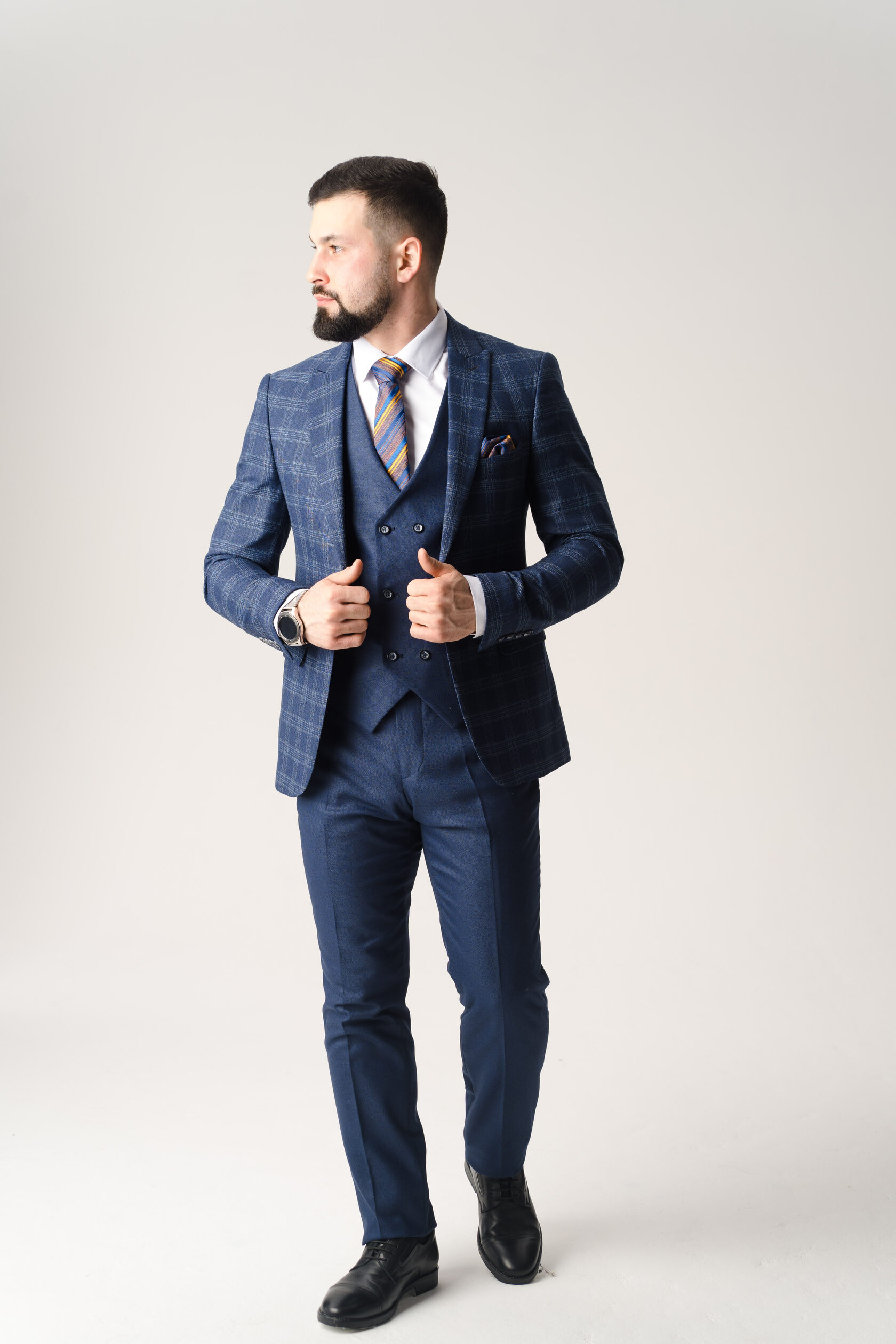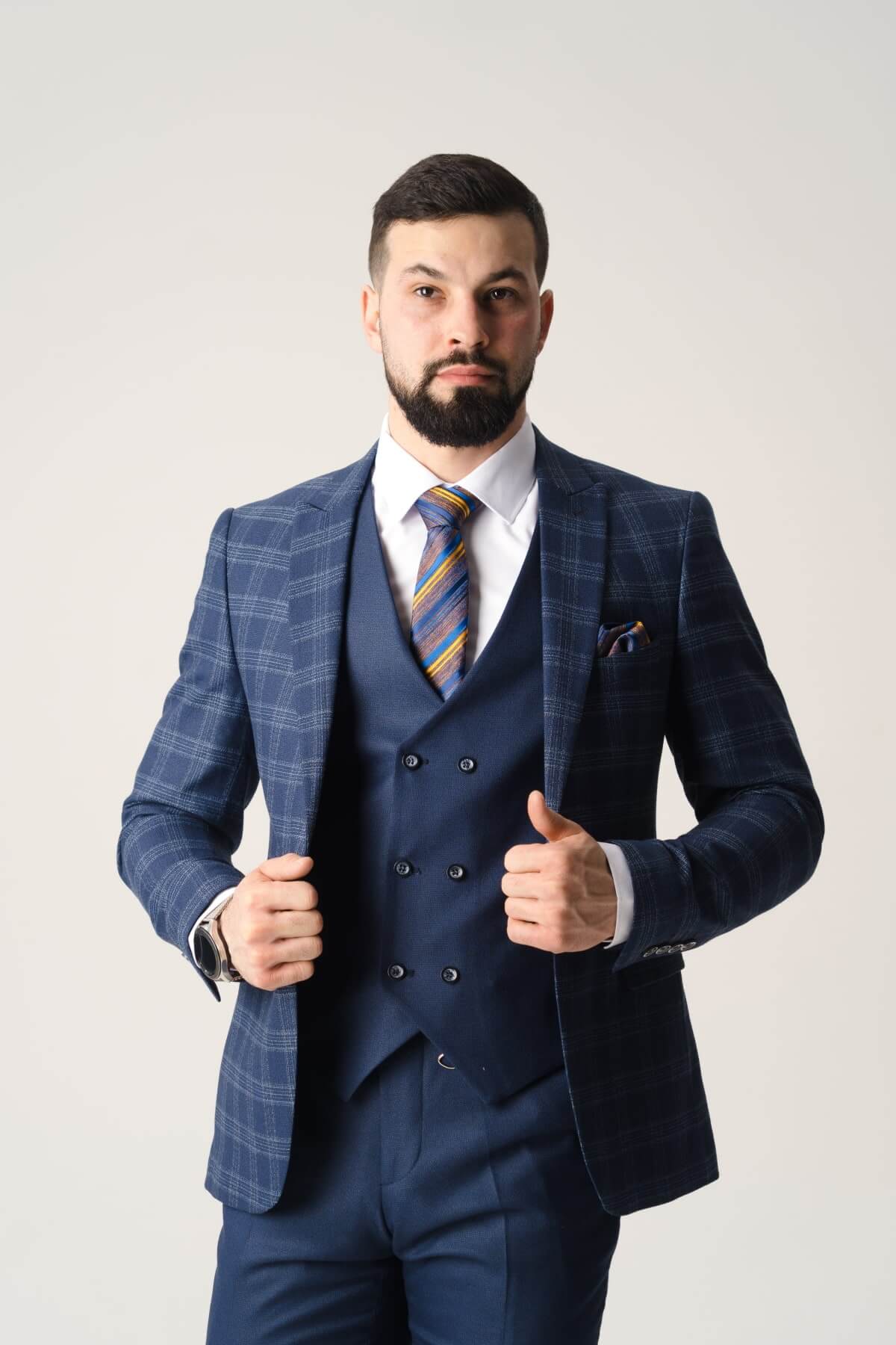 Костюм тройка синий в клетку