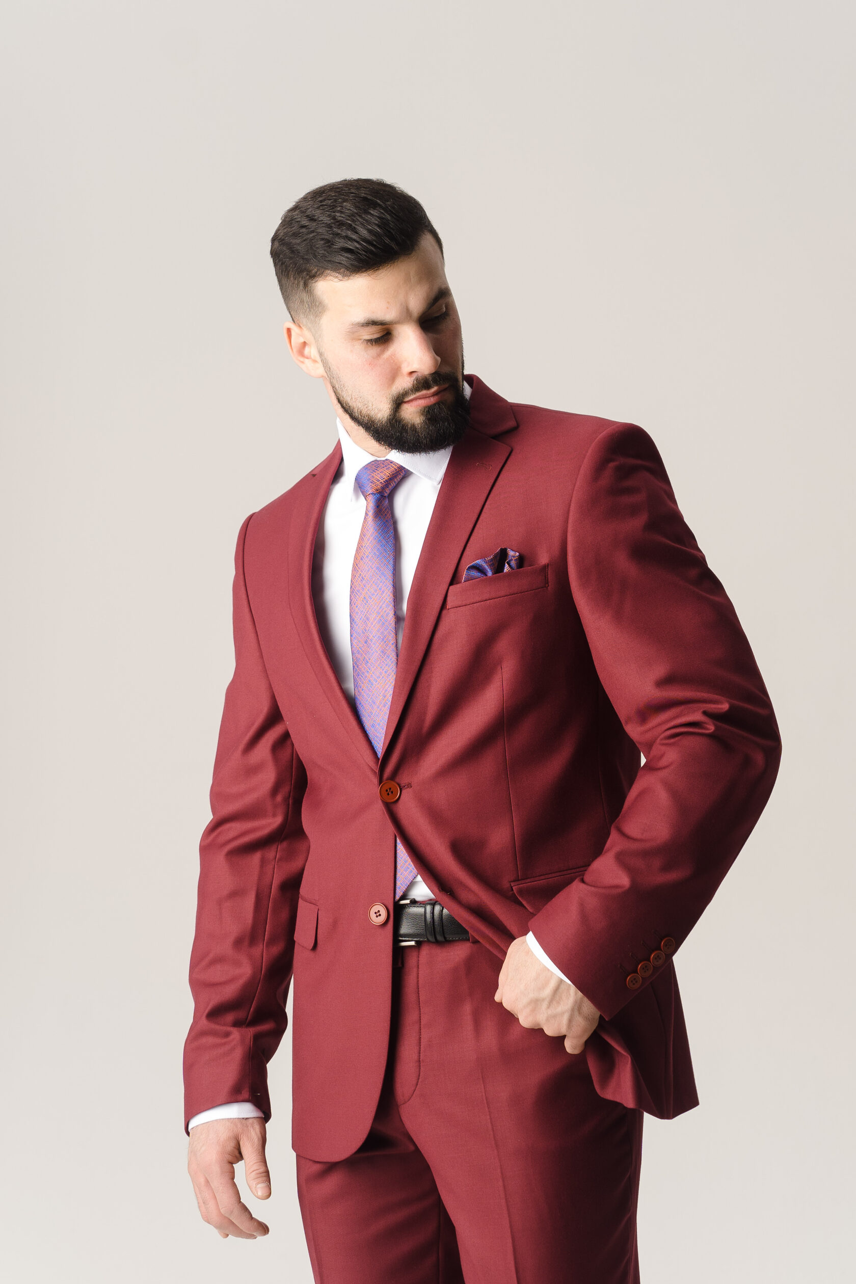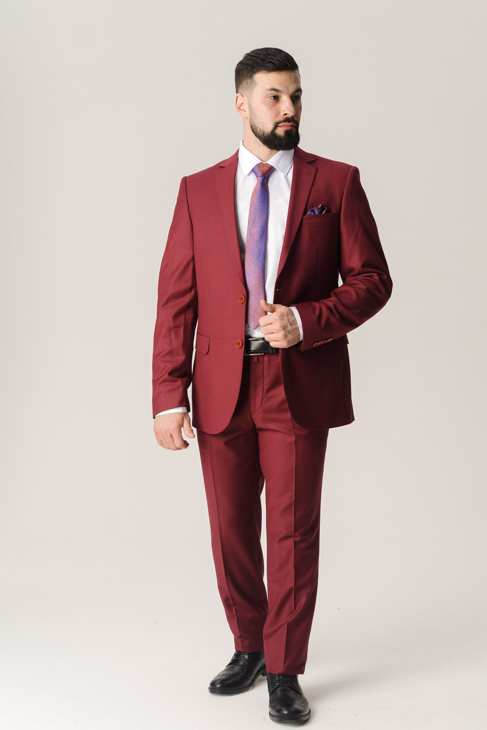 Костюм двойка алый красный однотонный