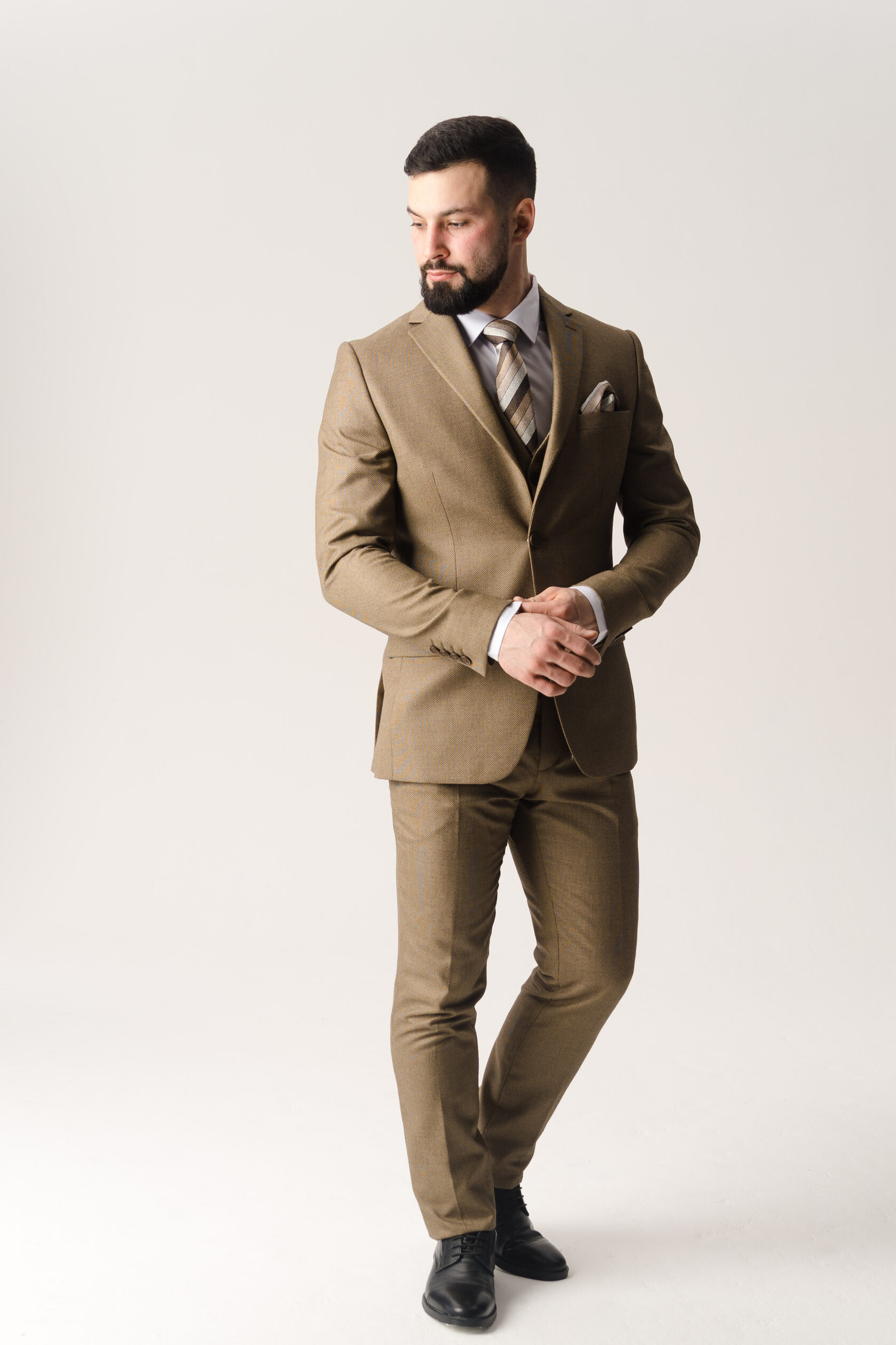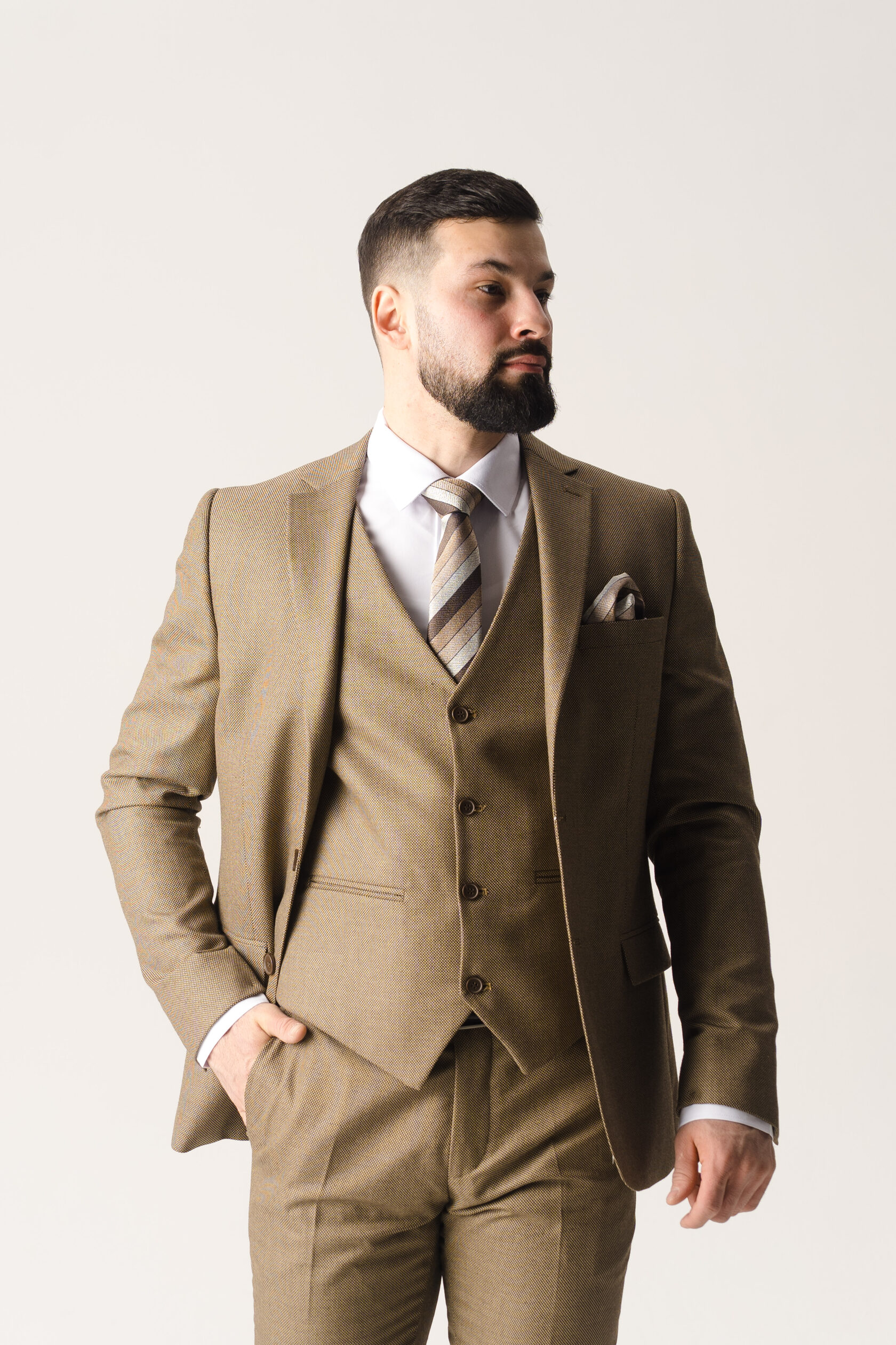 Костюм тройка темно-бежевый фактурный