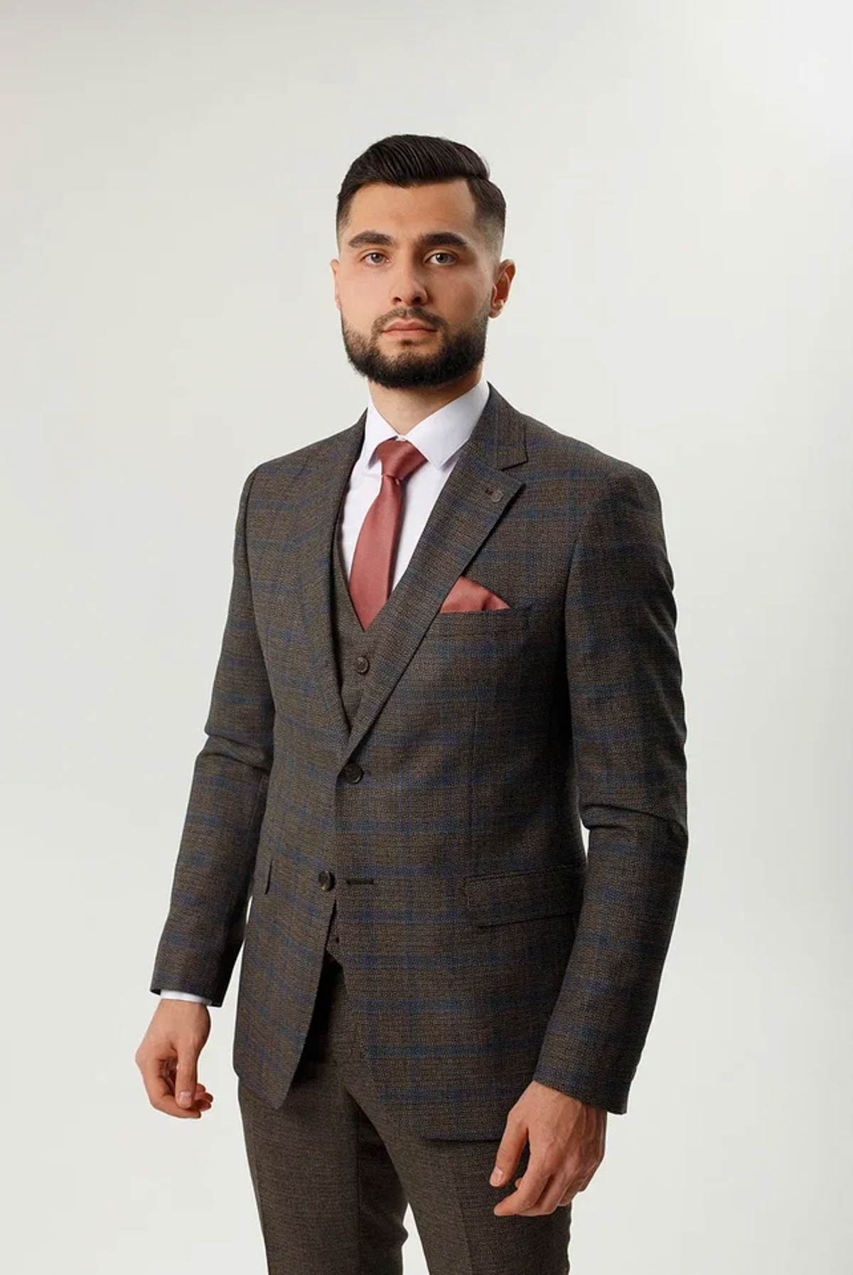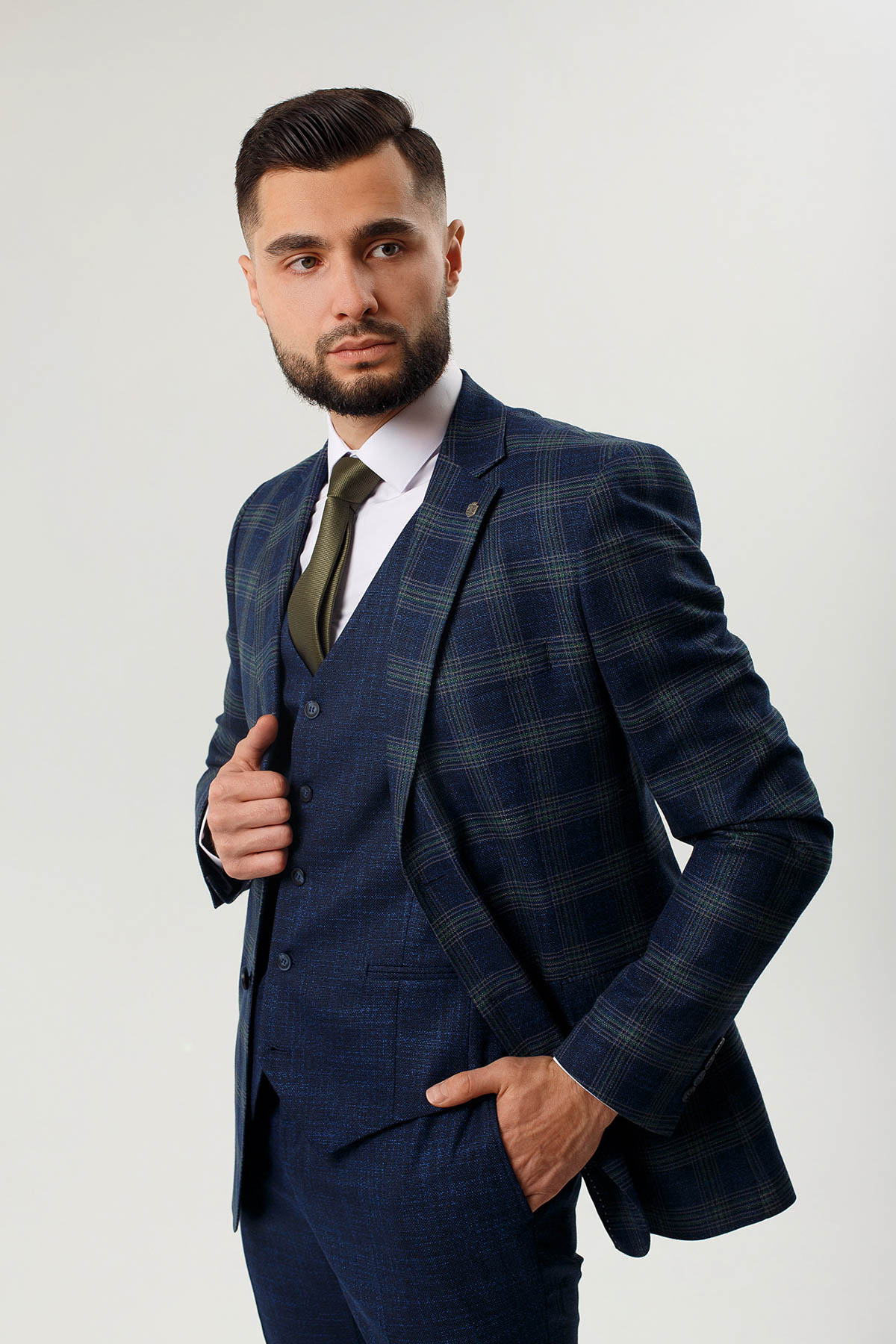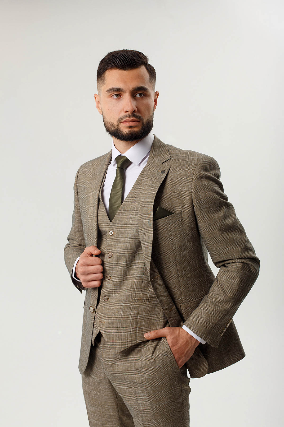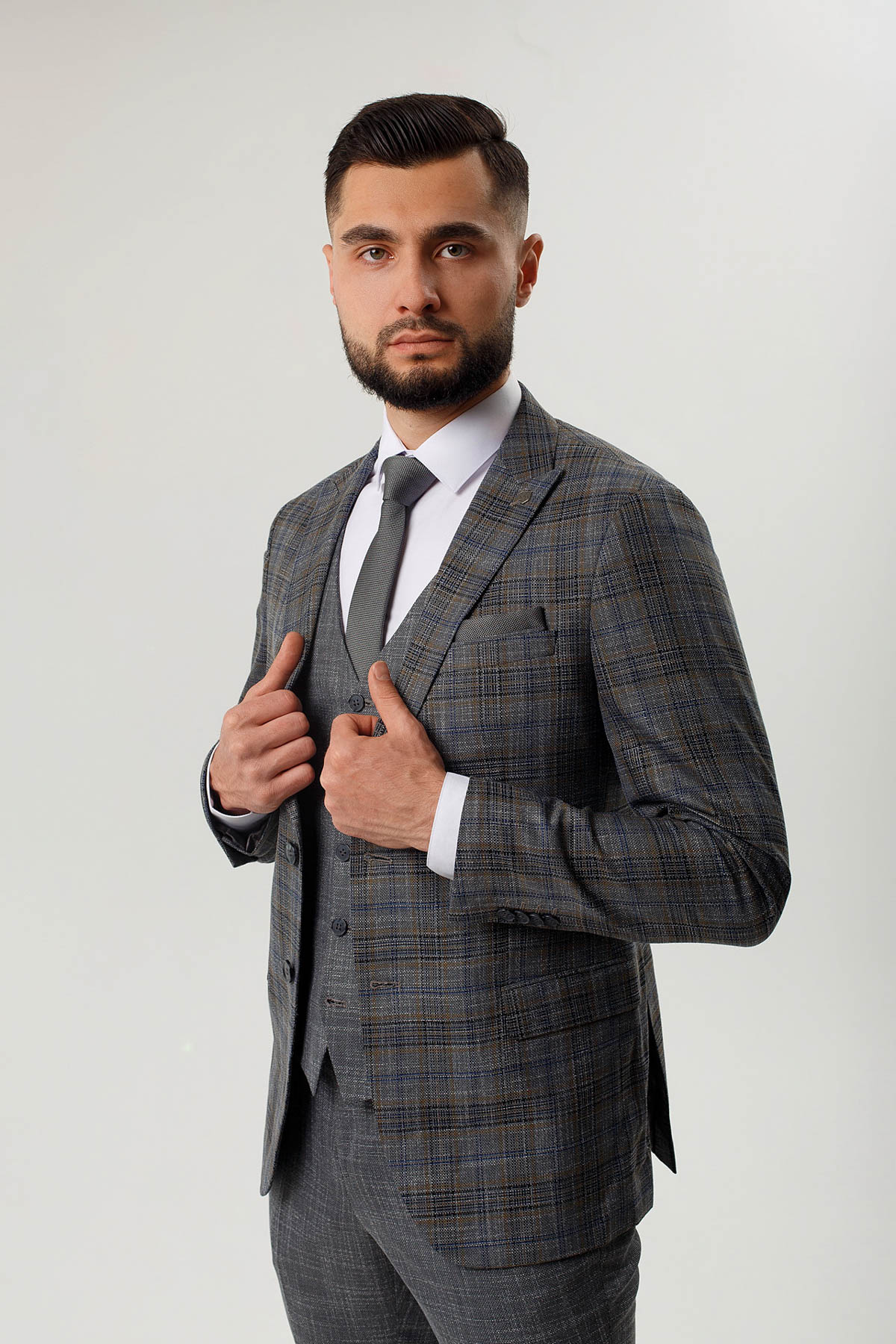 Костюм тройка комбинированный светло-серый в зелёную клетку